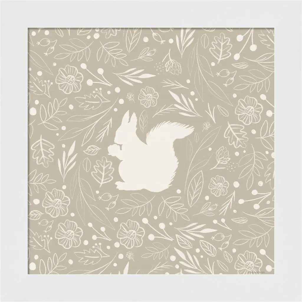 Floral Squirrel by Lady Louise Designs is a high quality piece of framed artwork. The finished size of this piece is 14" X 14". It has a Slim Solid White Flat with Satin Finish frame and is finished with high quality Acrylic Plexiglass. 100% Satisfaction Guaranteed.