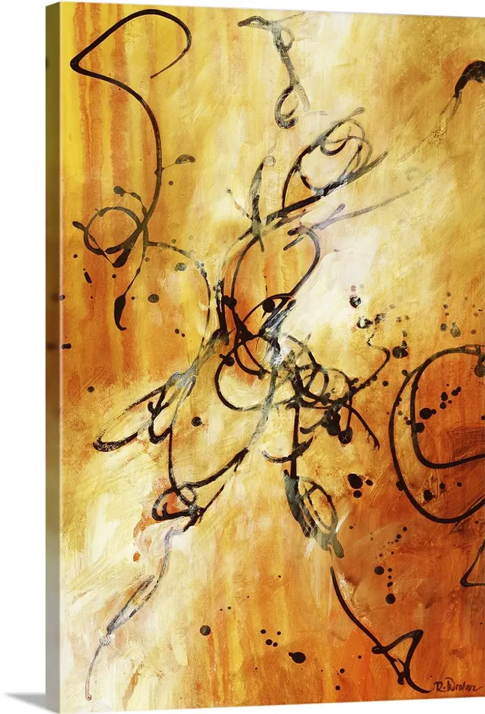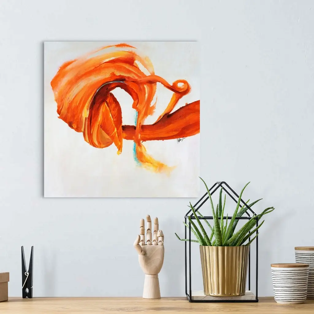 Contemporary painting of an energetic form painting in various shades from tangerine to cool orange-cream.