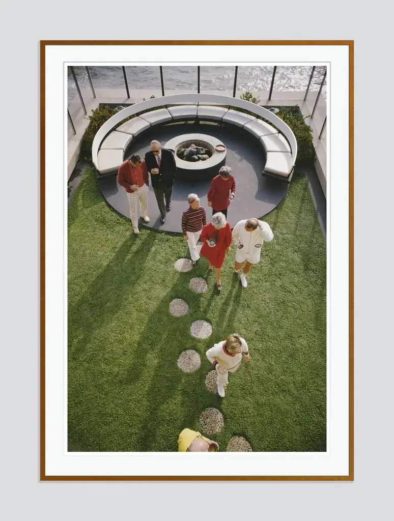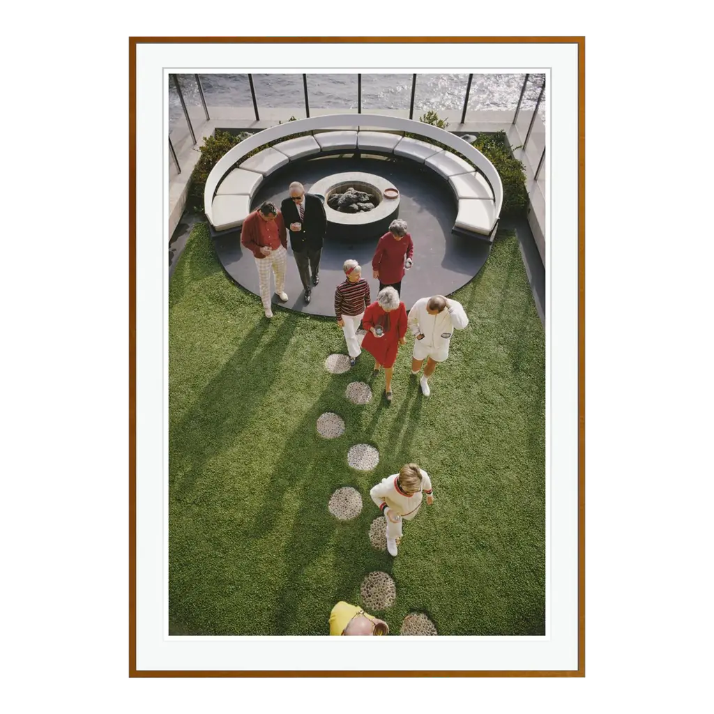 Laguna Beach 1970 A beachside garden in Laguna Beach, California, January 1970. Slim Aarons Slim Aarons was one of the twentieth century’s most prolific documenters of celebrity and socialite life. Over six decades, Aarons photographed some of the world’s most beautiful people in some of the globes most desirable destinations: jet-setting from Beverly Hills to Capri to the French Riviera, Aarons snapped the likes of the Kennedy family, Humphrey Bogart, Marilyn Monroe, and Grace Kelly. Paper size - 40x60" / 101x152 cm Approx frame size - 47x67" / 119x170 cm Stamped and issued by the Getty Images Archive London England (sole owners of the Slim Aarons Collection) made utilising the original transparency c print Framed in brown solid wood frame with mount and glazing - ready to hang Ships securely from London Printed later