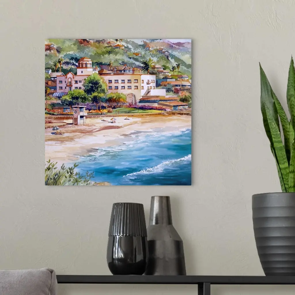 Watercolor painting of Hotel Laguna, Laguna main Beach, California