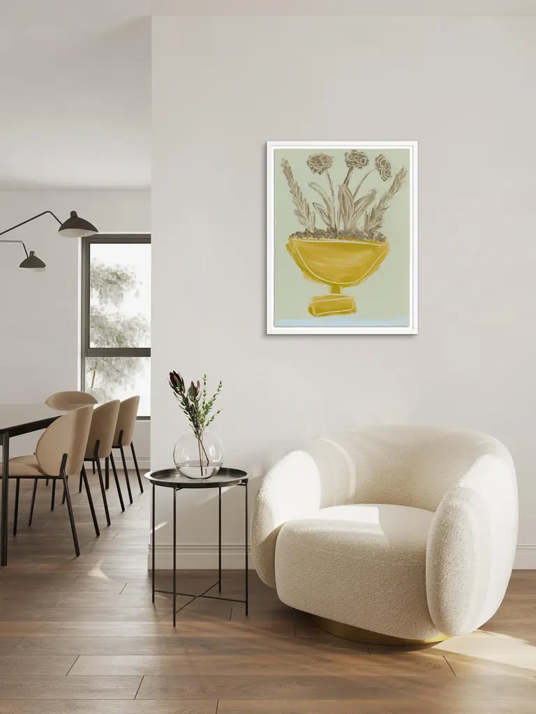 DESCRIPTION: Laie Floral Study I by Haley Mathewes in White Frame, Small Art Print SPECIFICATIONS: Type: Giclée Art Print on Matte Paper. Overall Size (in): 19x24. Image Size (in): 17x22. Orientation: Vertical. Flush/Float/Matted: Float. Frame Color: White. Hanging Hardware: Picture Perfect. FRAMING: Each art work arrives framed and ready to hang. We use handmade frames with a plexiglass glazing front, because it offers less glare than standard glass. At this time, we only offer framed prints. ARTIST BIO: Haley Mathewes is a talented artist based in Charleston, South Carolina, renowned for her evocative portrayals of the female form. With a rich background in costume design and a career in fashion retail, Haley's artistic vision is deeply influenced by her experience in these fields. Her work is distinguished by an expressive style and a masterful use of layered media, including charcoal, chalk, acrylic, watercolor, and gouache. This unique blend of techniques allows her to create dynamic and textured compositions that capture the essence of her subjects.