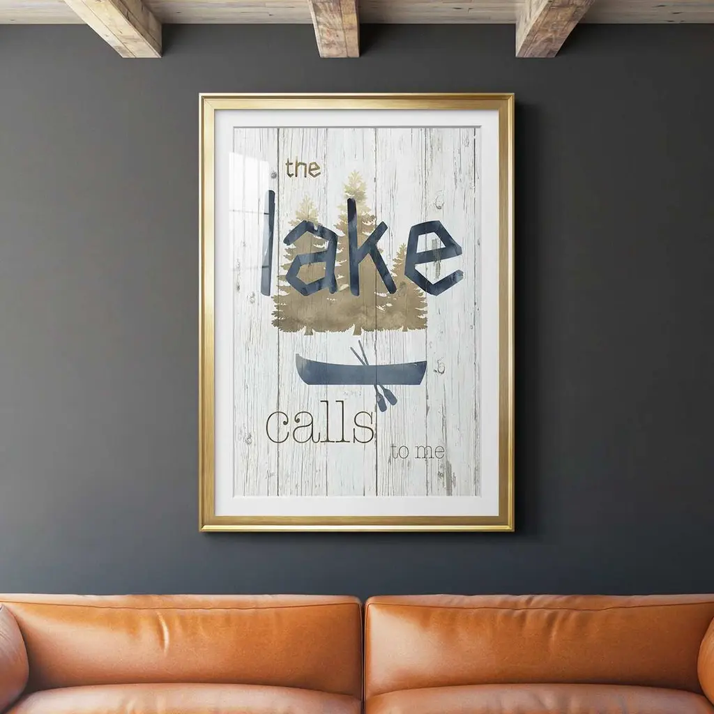 Lake Calls Me Premium Framed Print - Ready to Hang A Premium Framed Print created to last. Framed in distressed wood and available in an array of sizes and colors Featuring a beveled a solid wood stretcher bar, each piece comes ready to hand 4 SIZES AVAILABLE 30.5''X42.5'' - Overall Size 26.5'X36.5'' - Overall Size 22.5''x30.5'' - Overall Size 18.5''x24.5'' - Overall Size Each piece is made to order. Each piece comes with hanging hardware. Made in the USA Ready to Hang