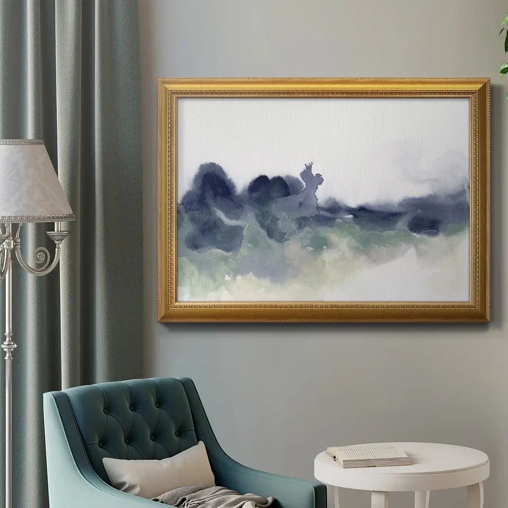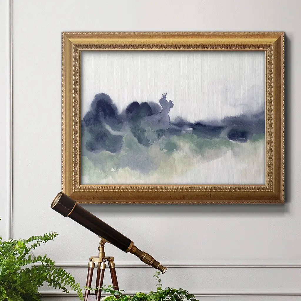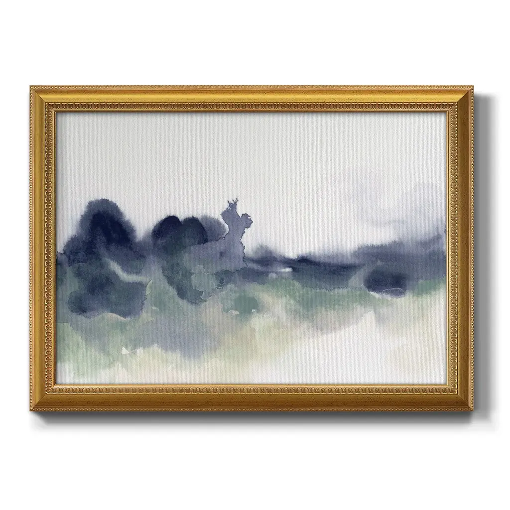 Lake Fog I Premium Framed Canvas- Ready to Hang A Premium Framed Canvas created to last. Framed in distressed wood and available in an array of sizes and colors Featuring a beveled a solid wood stretcher bar, each piece comes ready to hand 3 SIZES AVAILABLE 16''X20'' - Overall Size 18'X27'' - Overall Size 24''x36'' - Overall Size Each piece is made to order. Each piece comes with hanging hardware. Made in the USA Ready to Hang Giclee Paper Print Acrylic Glass Beveled Matt Board
