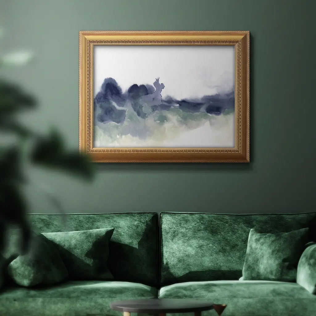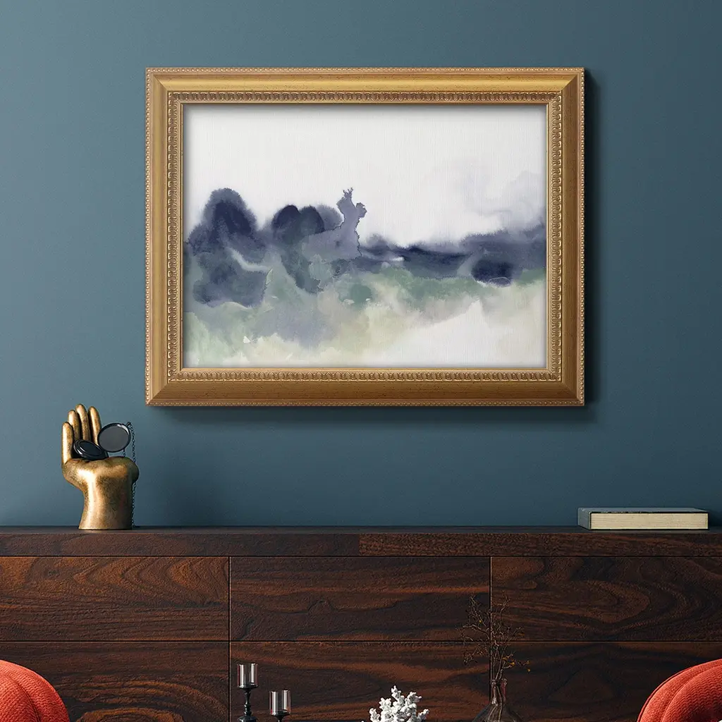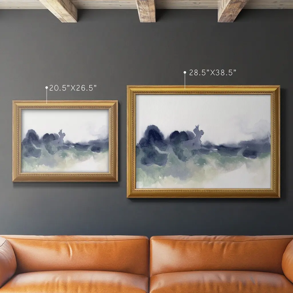 Lake Fog I Premium Framed Canvas- Ready to Hang A Premium Framed Canvas created to last. Framed in distressed wood and available in an array of sizes and colors Featuring a beveled a solid wood stretcher bar, each piece comes ready to hand 3 SIZES AVAILABLE 16''X20'' - Overall Size 18'X27'' - Overall Size 24''x36'' - Overall Size Each piece is made to order. Each piece comes with hanging hardware. Made in the USA Ready to Hang Giclee Paper Print Acrylic Glass Beveled Matt Board