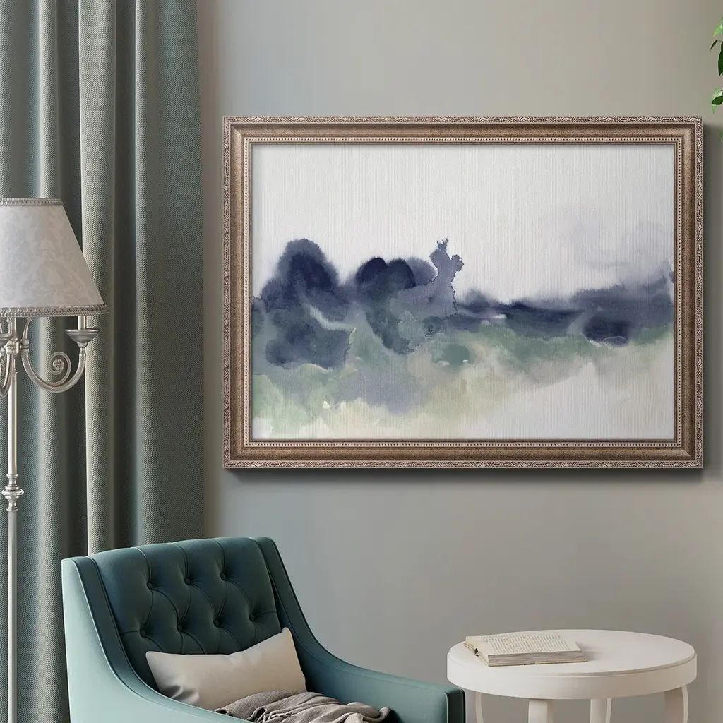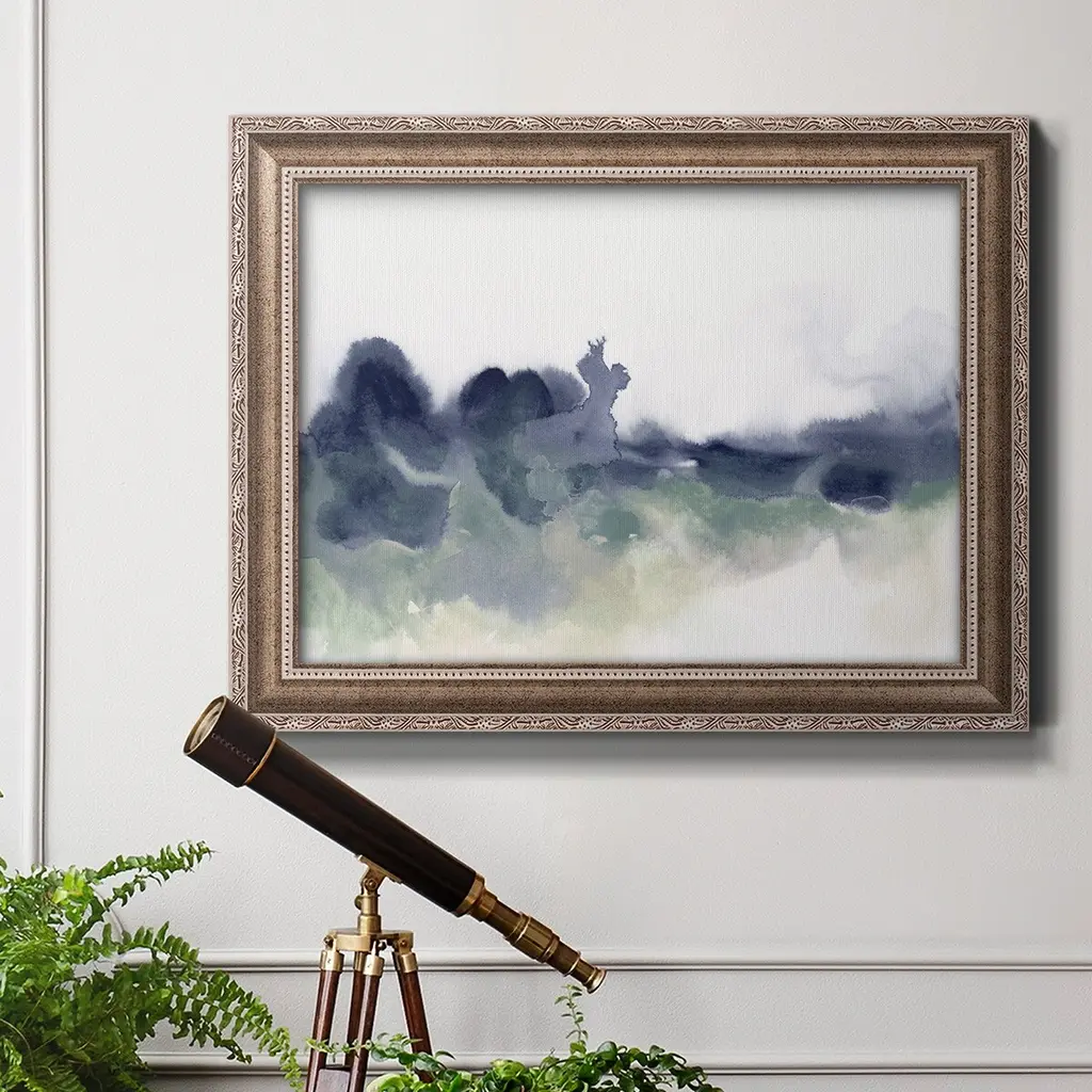 Lake Fog I Premium Framed Canvas- Ready to Hang A Premium Framed Canvas created to last. Framed in distressed wood and available in an array of sizes and colors Featuring a beveled a solid wood stretcher bar, each piece comes ready to hand 3 SIZES AVAILABLE 16''X20'' - Overall Size 18'X27'' - Overall Size 24''x36'' - Overall Size Each piece is made to order. Each piece comes with hanging hardware. Made in the USA Ready to Hang Giclee Paper Print Acrylic Glass Beveled Matt Board