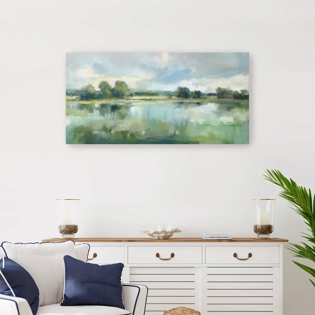 Transform your space with this mesmerizing green abstract moody landscape "Lake Of The Meadows" canvas art by Aeious Plata. Featuring deep green tones and dynamic compositions, this artwork evokes a sense of mystery and tranquility. The rich colors and captivating design create an atmosphere of sophistication and elegance, making it an ideal statement piece for both contemporary and classic interiors. Available in black frame, dark walnut frame, oak frame, or as a wrapped canvas. Our Gallery Wrap Canvas Prints are proudly assembled with high quality materials in California, USA. Each piece is printed on a thick, archival grade canvas using Giclee technology. It is then hand-stretched by our experienced artisans over solid wood bars, which will not warp over time. The final product is a piece personally crafted for you to confidently display on your wall. Care and Assembly: Ensure that the location of your piece has little to no exposure to heat, sunlight, and moisture. Wipe clean, only if needed. Each piece includes a sawtooth hanger to hang on your wall horizontally.