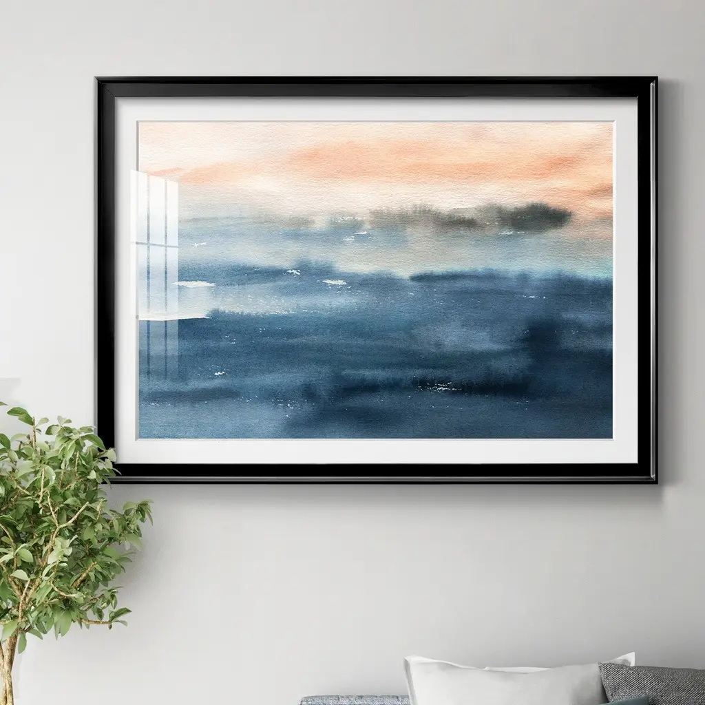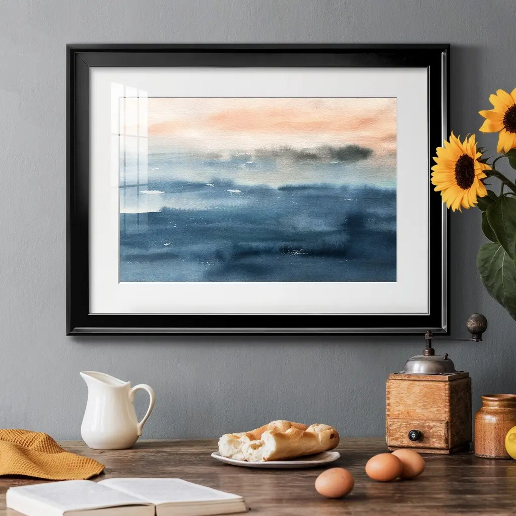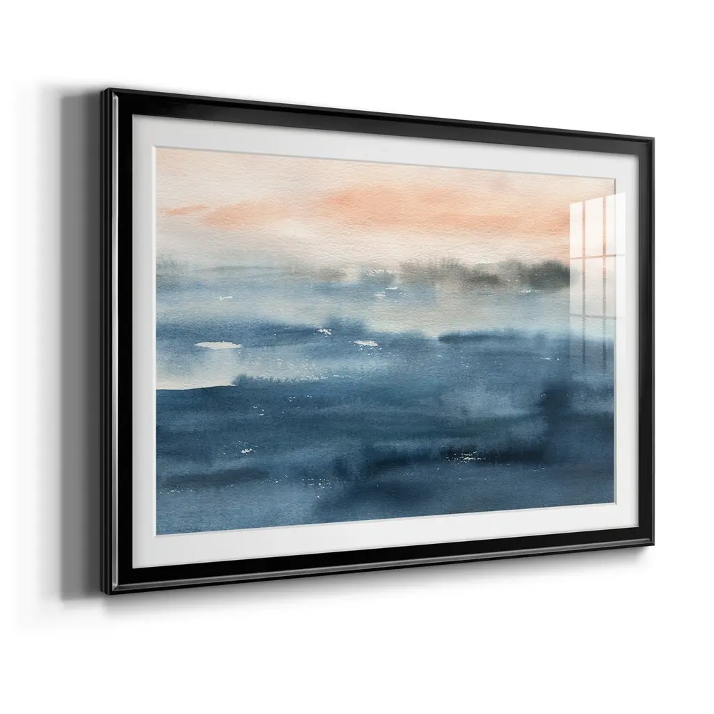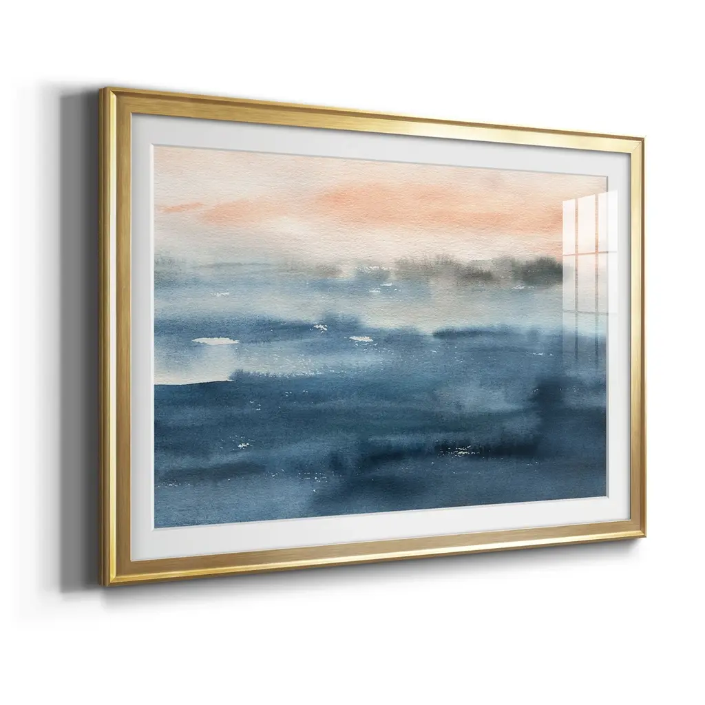 Lake Sunrise Premium Framed Print - Ready to Hang A Premium Framed Print created to last. Framed in distressed wood and available in an array of sizes and colors Featuring a beveled a solid wood stretcher bar, each piece comes ready to hand 4 SIZES AVAILABLE 30.5''X42.5'' - Overall Size 26.5'X36.5'' - Overall Size 22''x30'' - Overall Size 18''x24'' - Overall Size Each piece is made to order. Each piece comes with hanging hardware. Made in the USA Ready to Hang Giclee Paper Print Acrylic Glass Beveled Matt Board