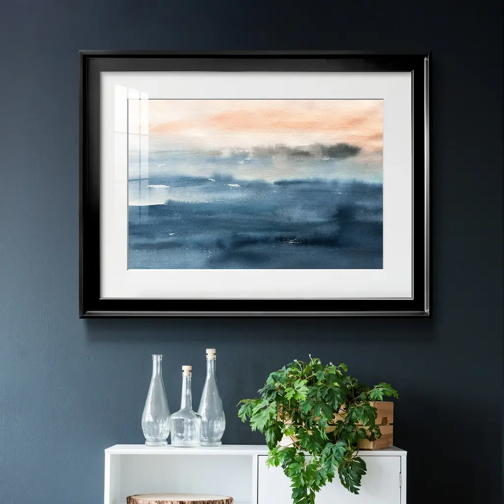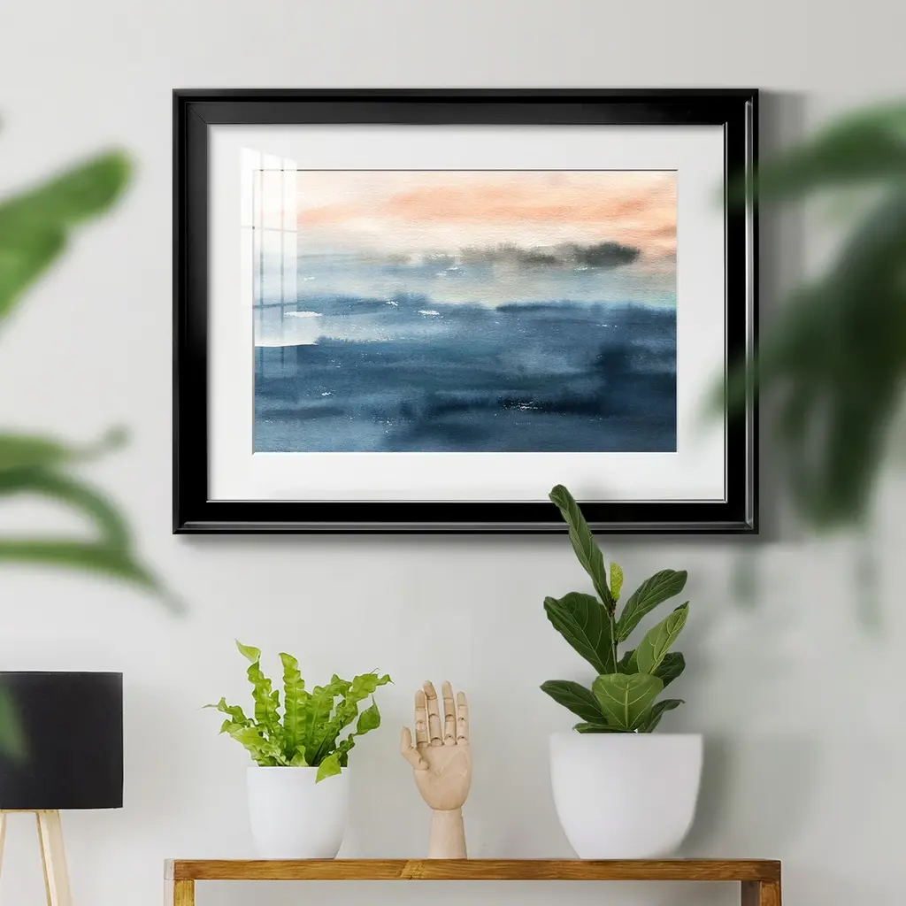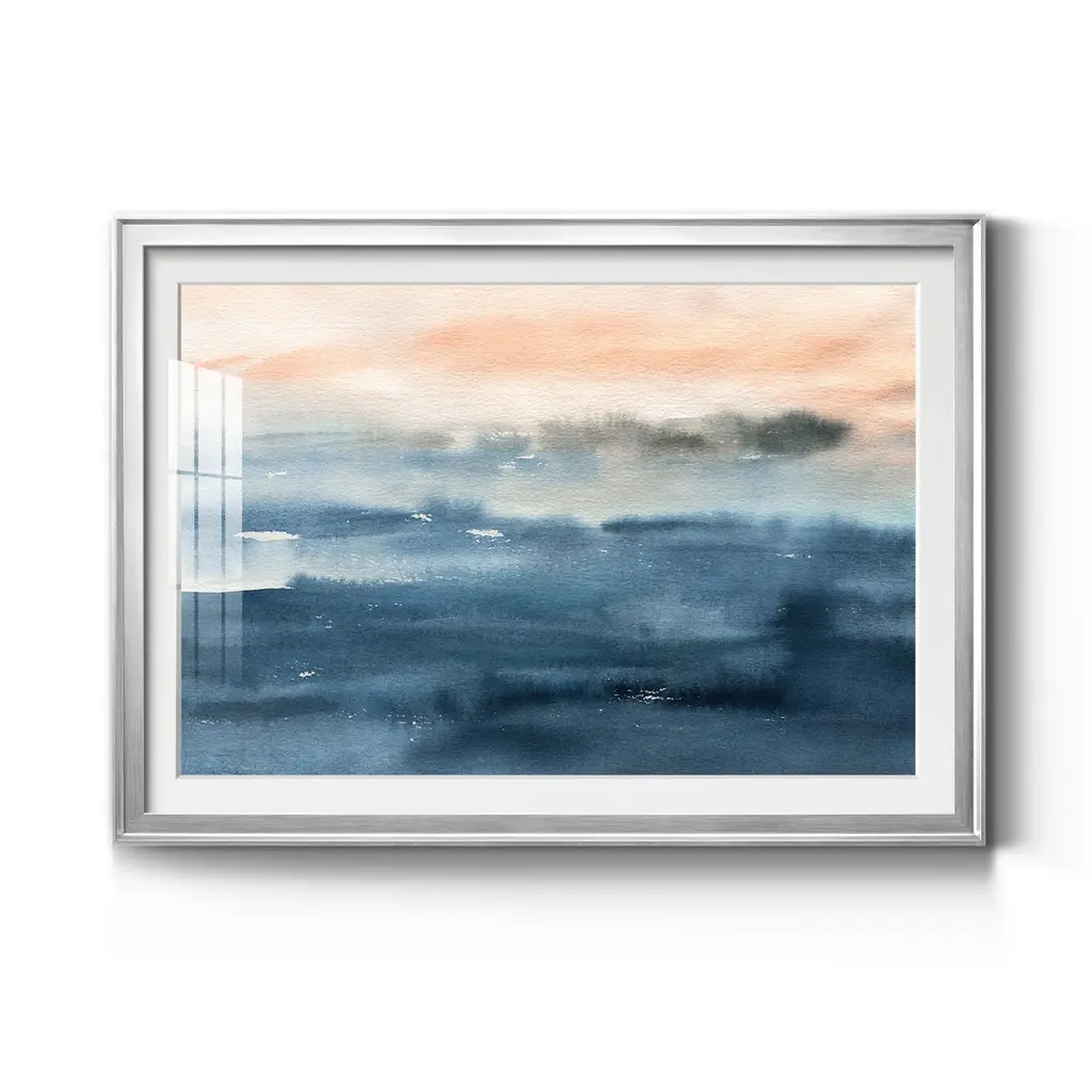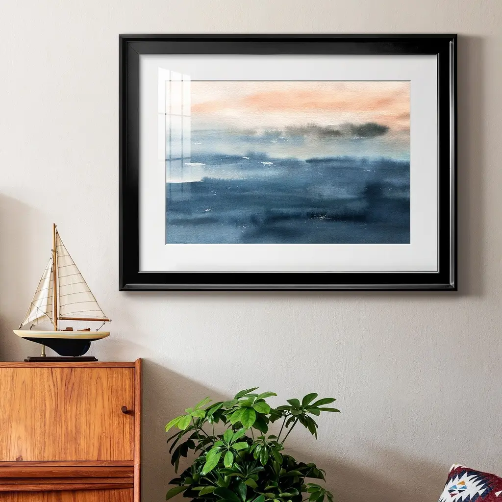 Lake Sunrise Premium Framed Print - Ready to Hang A Premium Framed Print created to last. Framed in distressed wood and available in an array of sizes and colors Featuring a beveled a solid wood stretcher bar, each piece comes ready to hand 4 SIZES AVAILABLE 30.5''X42.5'' - Overall Size 26.5'X36.5'' - Overall Size 22''x30'' - Overall Size 18''x24'' - Overall Size Each piece is made to order. Each piece comes with hanging hardware. Made in the USA Ready to Hang Giclee Paper Print Acrylic Glass Beveled Matt Board
