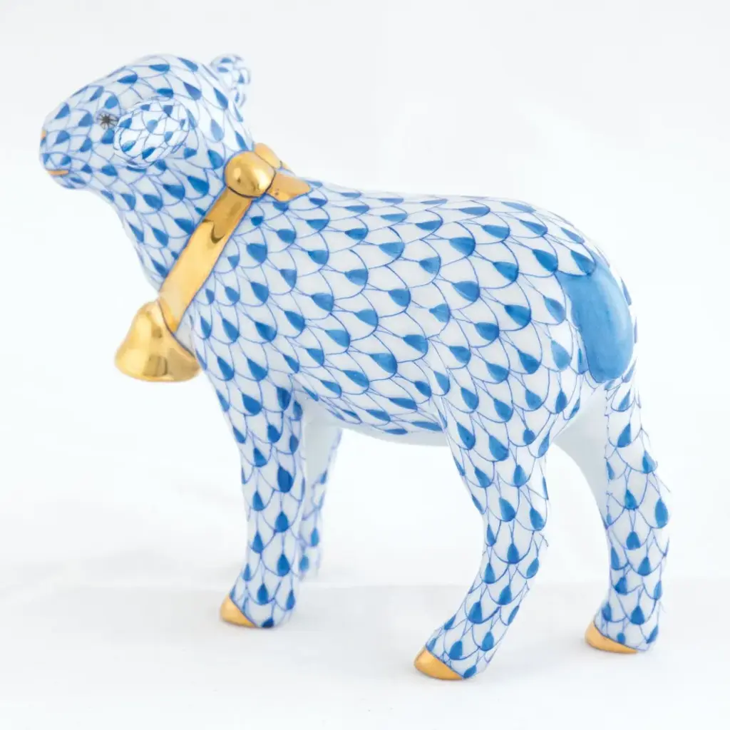 Lamb With Bell Blue 3.25 In L X 1.75 In W X 2.75 In H