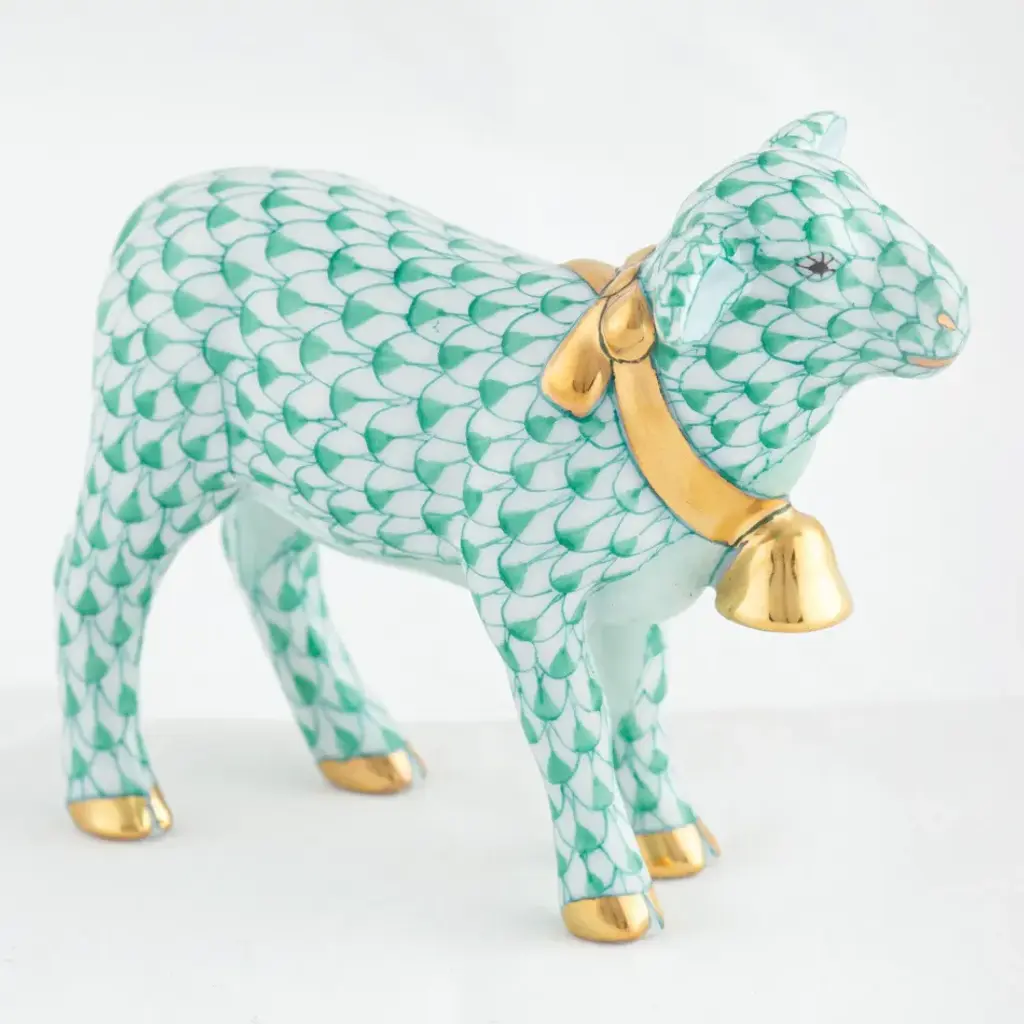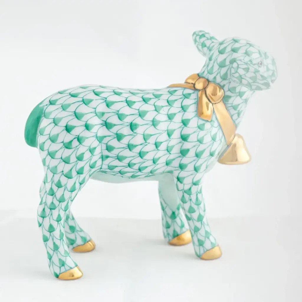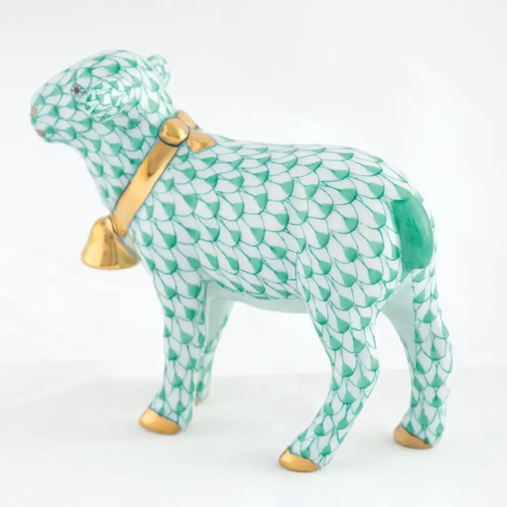 Lamb With Bell Green 3.25 In L X 1.75 In W X 2.75 In H