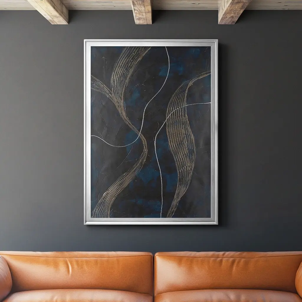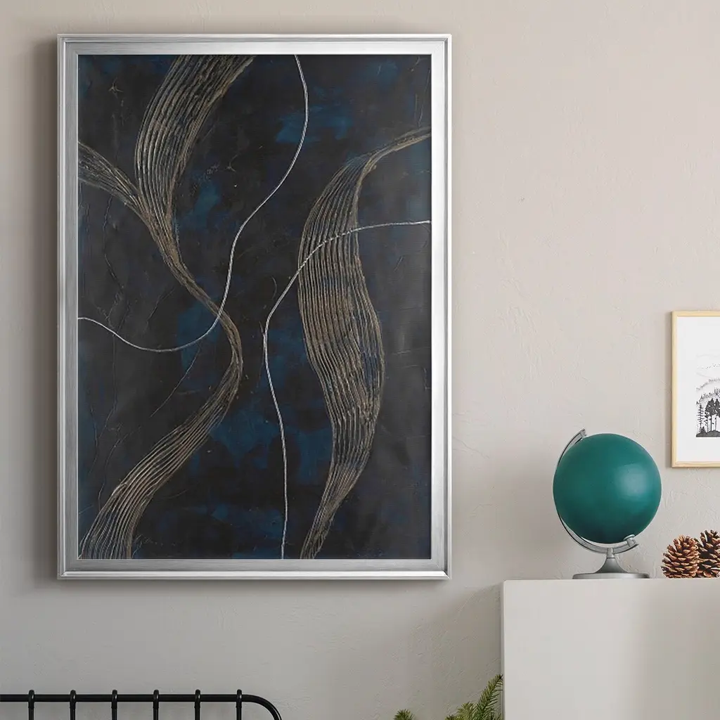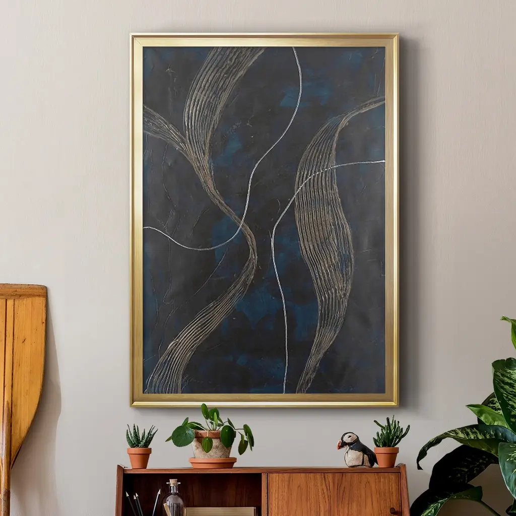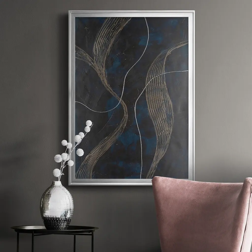 Laminar Flow II Premium Framed Print - Ready to Hang A Premium Framed Print created to last. Framed in distressed wood and available in an array of sizes and colors Featuring a beveled a solid wood stretcher bar, each piece comes ready to hand 4 SIZES AVAILABLE 30.5''X42.5'' - Overall Size 26.5'X36.5'' - Overall Size 22.5''x30.5'' - Overall Size 18.5''x24.5'' - Overall Size Each piece is made to order. Each piece comes with hanging hardware. Made in the USA Ready to Hang