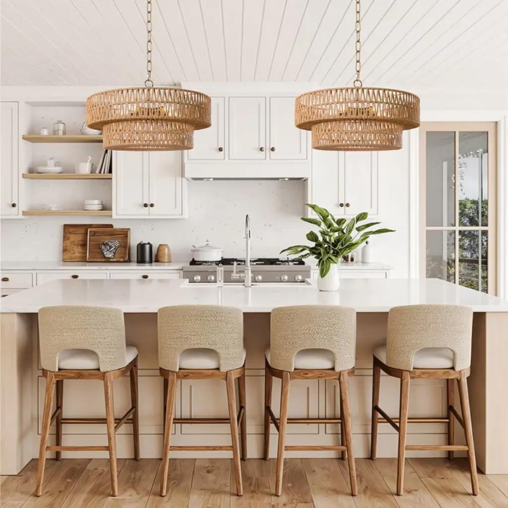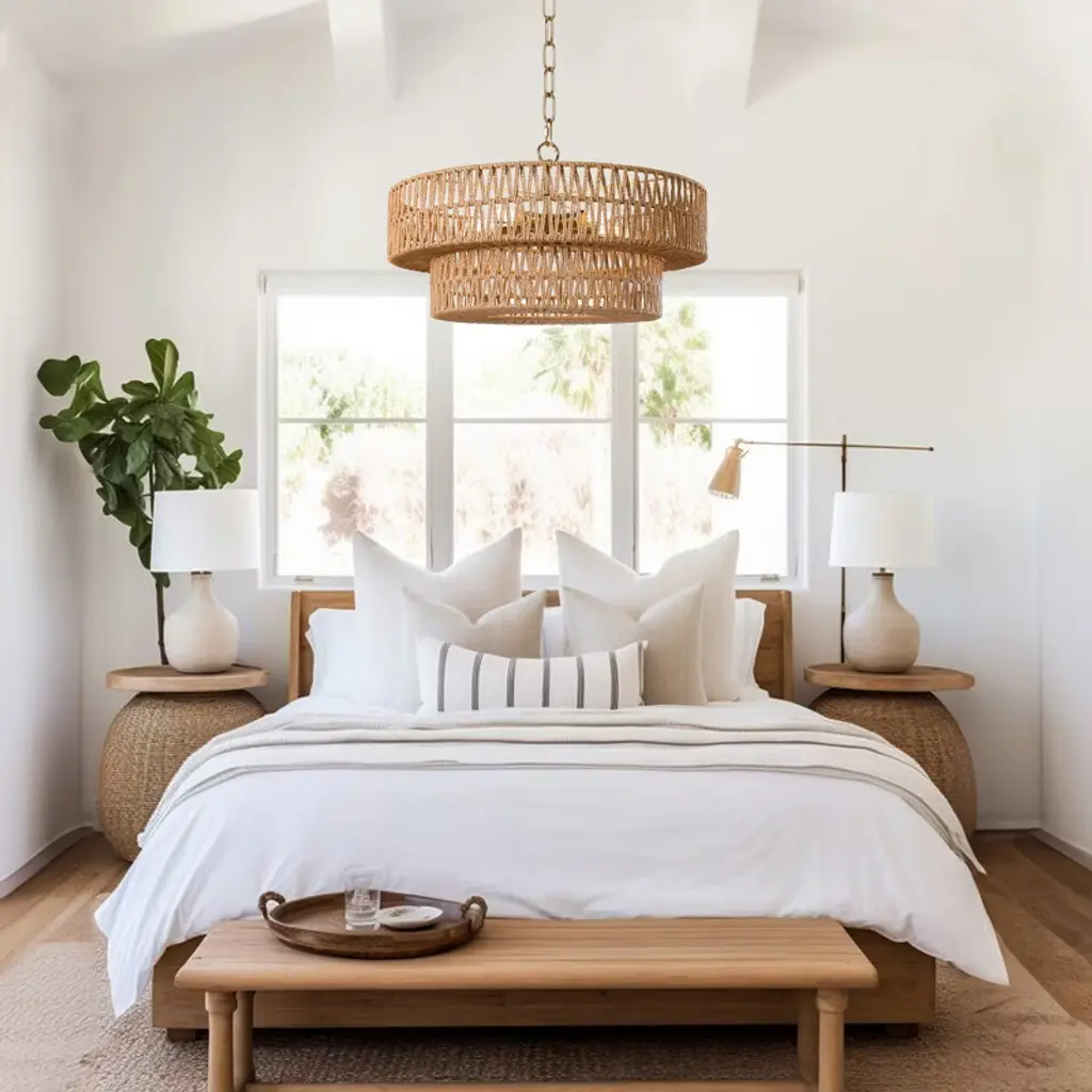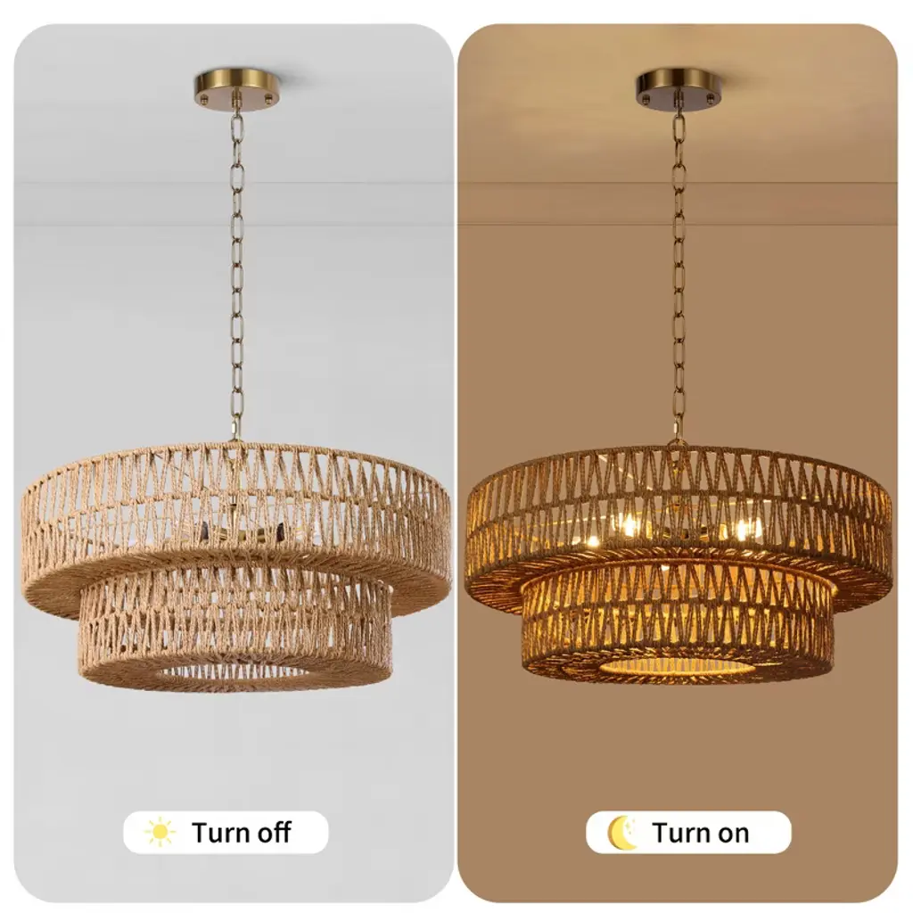 With its unique round drum shape and black candle holder, the design of rattan light fixture preserves the natural charm of space, while adding modern touch; each piece is handwoven and features unique natural textures, making it not just as practical lighting but also as refined decorative art piece; whether it is bohemian, coastal, rustic, farmhouse, or vintage, modern, industrial home style, it effortlessly enhances home space with elegant character and style