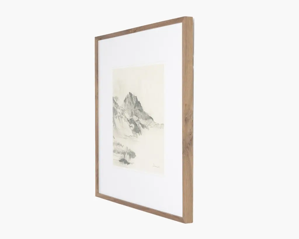 Artist Dan Hobday finds inspiration in the coastal landscapes of his hometown of Devon, England. Charcoal-inspired and printed on textured fine art paper with a deckled edge, framed within rustic walnut. Size shown is print size, add frame thickness to print size for total frame size Weight: 20 lbs Shipping box: 37" W x 3.5" D x 37" H, 25lbs.
