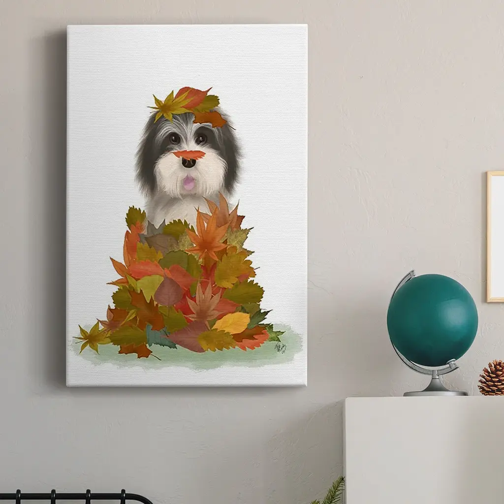 Landed In Autumn, Black And White Dog Premium Gallery Wrapped Canvas - Ready To Hang - 40x60