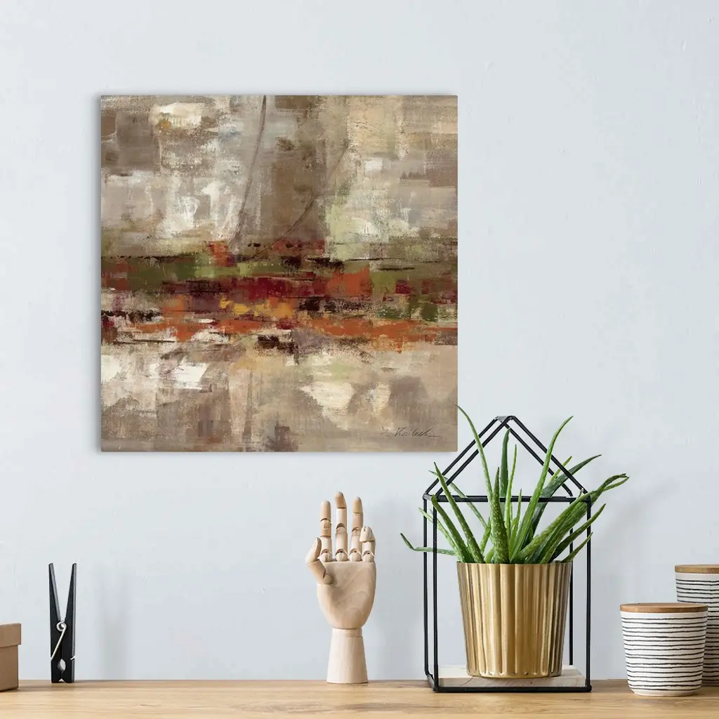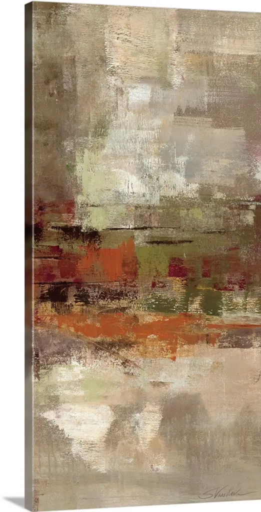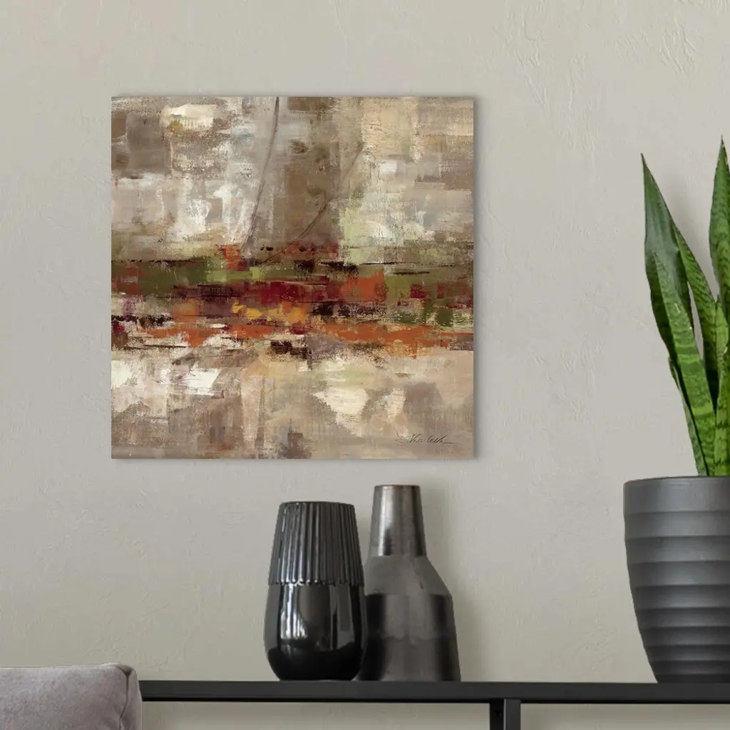 An abstract piece of art with brush strokes of earthy tones giving the painting depth.
