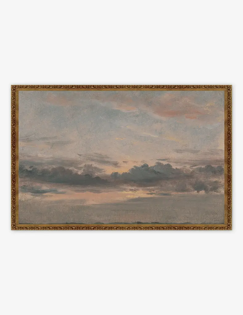 Bring a quiet depth to your wall decor with this beautiful reproduction. The piece captures the warmth and drama of a sunset over the Hudson valley with a serene composition. We love the bold hues and dusky tones for a gallery art wall or moody curation.