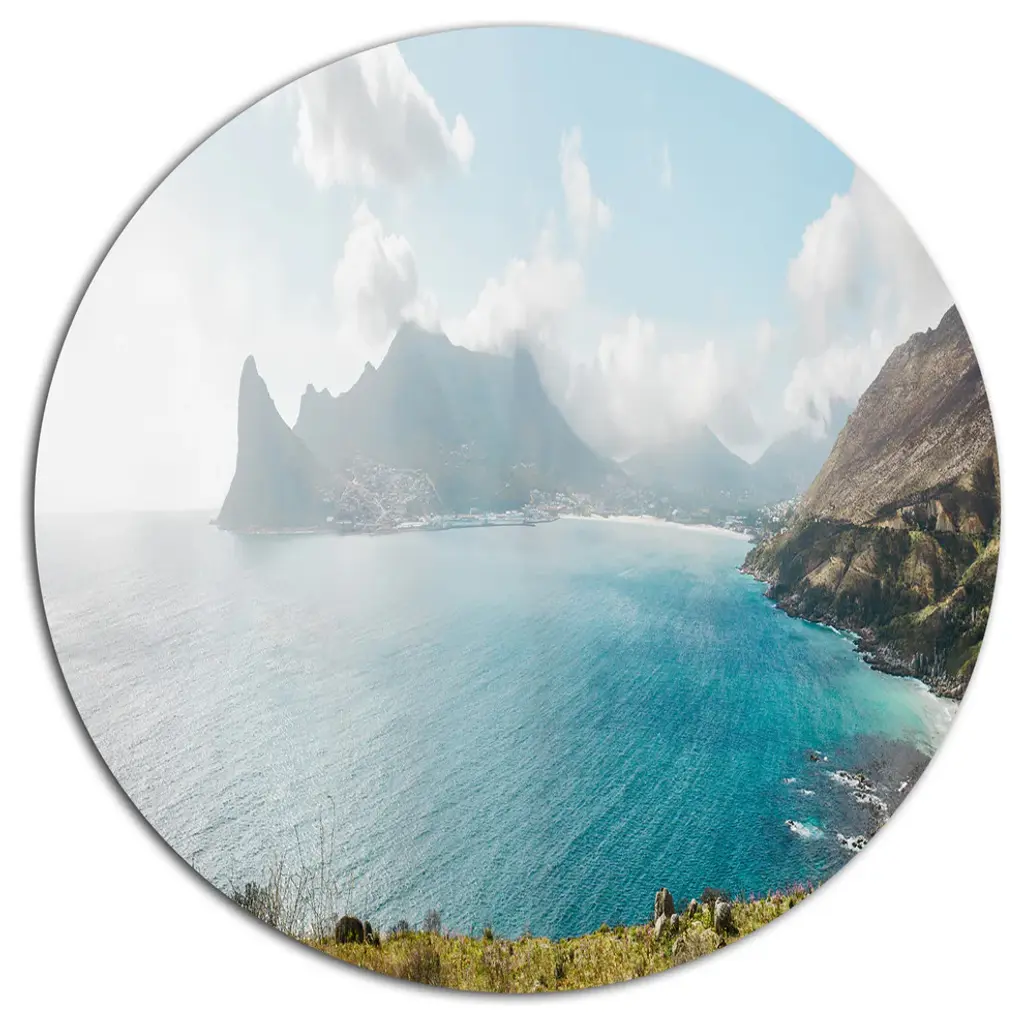 Bring Contemporary Abstraction to your home with this large Circle Metal wall art. This Landscape of Olle Walking Path Metal Artwork makes it the focal point of any room or office. - White Gloss Coating ensures colors are extra vibrant with light reflection.- Aluminum grade Sheet Metal with 1 inch mounting frame on the back giving the illusion that the artwork is floating on the wall..- Mounting Brackets are included along with instructions.- High Quality Digital images are created directly into a glossy aluminum panel producing a stunning and captivating print into the glossy finish of the metal.- Water, Fire and Scratch resistant HD Aluminum panels.- Looks better than any photo paper and guaranteed to last at least 20 years- Easy to clean with a microfiber cloth. Colors are far superior to regular Canvas Art. - Easy to Hang