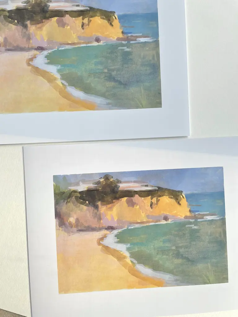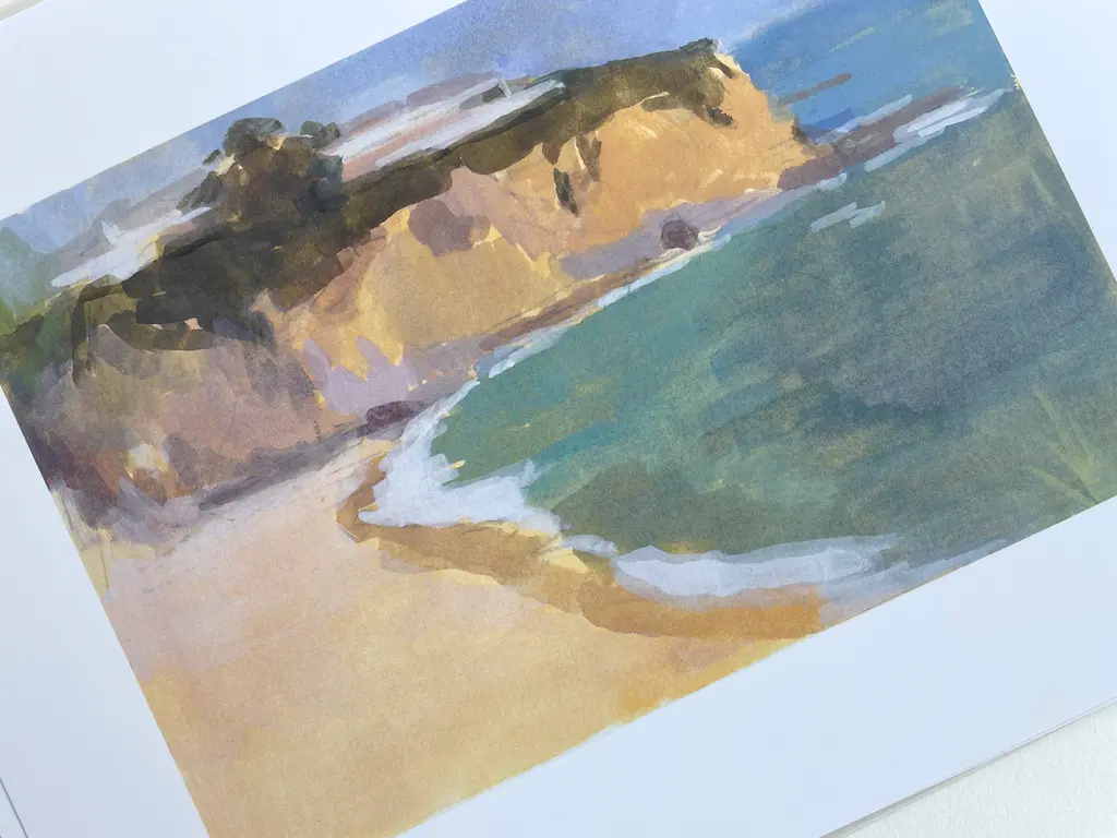 This item is a print of my original painting "the cove." I lived in this area for several years and spent much time admiring and painting the California coast en plein air. The print would make a lovely addition to a coastal home or any place you simply need a reminder of the beautiful California coast. The image is printed with archival inks on fine art paper that beautifully captures the color and texture of the original piece. There is a white border around the artwork, and each print is signed and titled under the image. details: "the cove" •image size: 10.5"W x 7.5"H •print size: 14"W x11"H Ships within 3 business days. about my work: I'm a full time artist with a BFA from Laguna College of Art & Design, where I majored in drawing and painting, working primarily from life and the nude figure. My work is inspired by nature, my everyday surroundings, and a collection of old photographs. I show in galleries and exhibitions in addition to selling directly from my studio. If you have any questions regarding this item, just ask below and I will get back to you within 24 hours. Thank you for visiting!