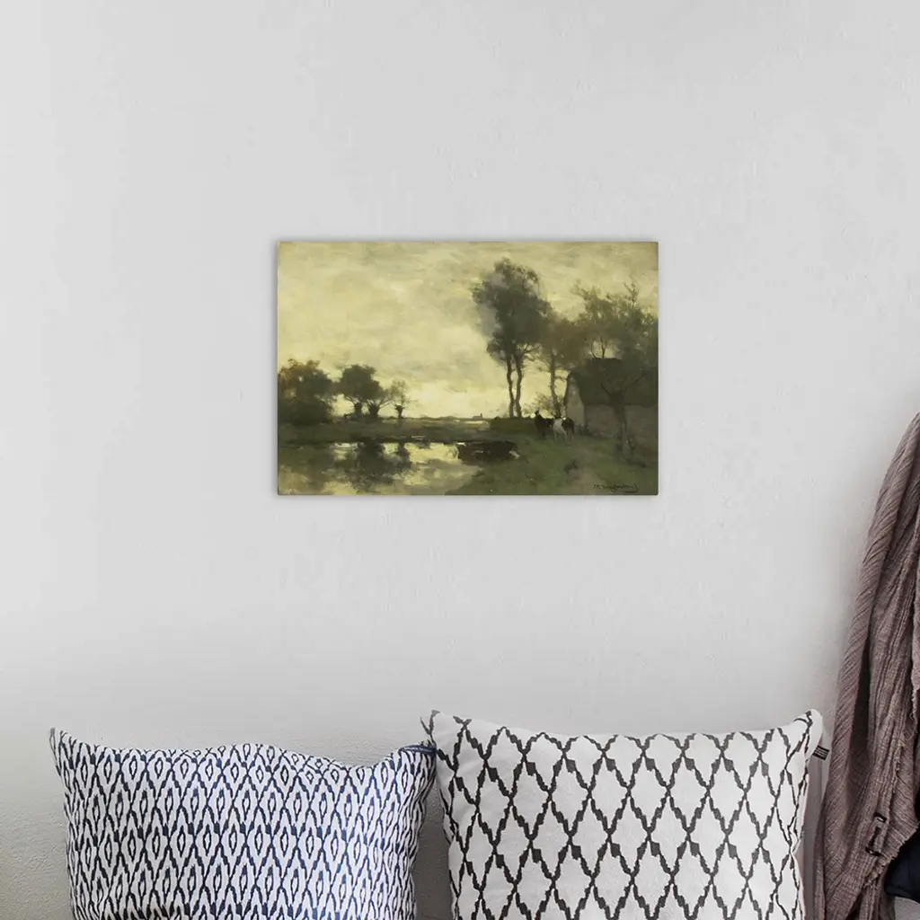 Landscape With Farm With A Pond, 1870-1903, Dutch Oil Painting