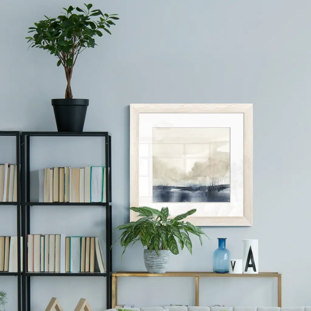 A beautiful modern interpretation of a traditional landscape – in miniature! Perfect for adorning your shelves (#shelfie) or adding to a gallery wall, the four options in the Landside Sketch Mini series are hard to pass up. Each features a contemporary landscape in soothing colors, framed in a wide mat. I can see all four grouped together above a small console table or in a hallway nook. Dimensions: 20"x20"