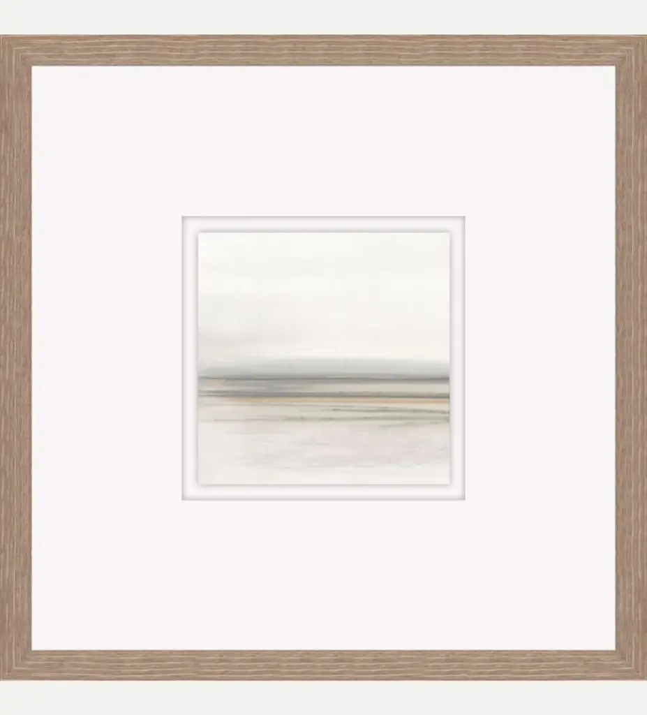A beautiful modern interpretation of a traditional landscape – in miniature! Perfect for adorning your shelves (#shelfie) or adding to a gallery wall, the four options in the Landside Sketch Mini series are hard to pass up. Each features a contemporary landscape in soothing colors, framed in a wide mat. I can see all four grouped together above a small console table or in a hallway nook. Dimensions: 20"x20"