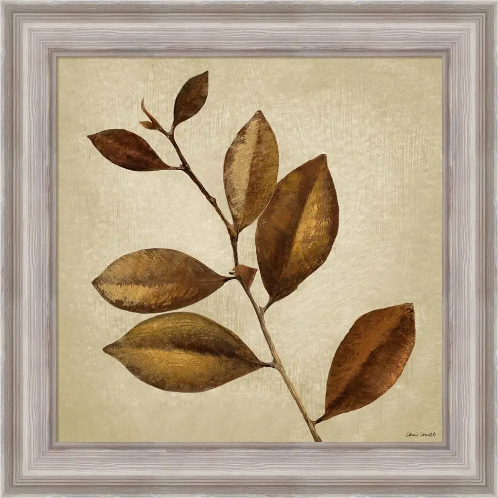 Antiqued Leaves II by Lanie Loreth is a high quality piece of framed artwork. The finished size of this piece is 20" X 20". It has a Weathered White Distressed frame and is finished with high quality Acrylic Plexiglass.. 100% Satisfaction Guaranteed.