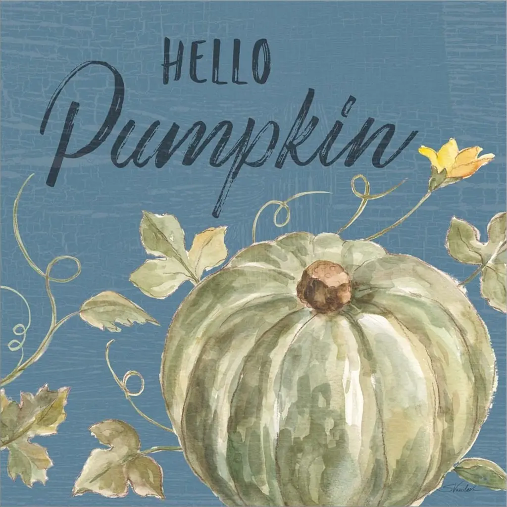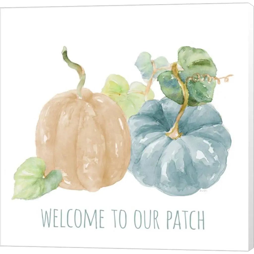Pumpkin Patch Welcome by Lanie Loreth is a high quality piece of canvas artwork. The finished size of this piece is 12" X 12", and it has a depth 1.5". There is a UV protective coating over the entire image, and it is ready to hang on your wall with no hardware required. 100% Satisfaction Guaranteed.