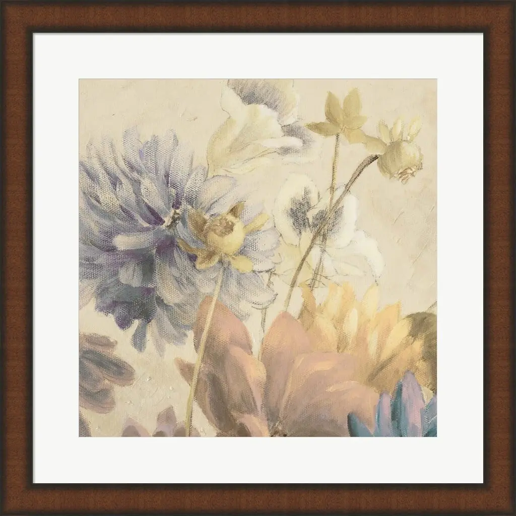 Soft Bloomers by Lanie Loreth is a high quality piece of framed artwork. The finished size of this piece is 19.75" X 19.75" with an image size of 14" X 14". It has a Slim Teak Espresso Brown Edges frame with a 2" white mat and is finished with high quality Glass. 100% Satisfaction Guaranteed.