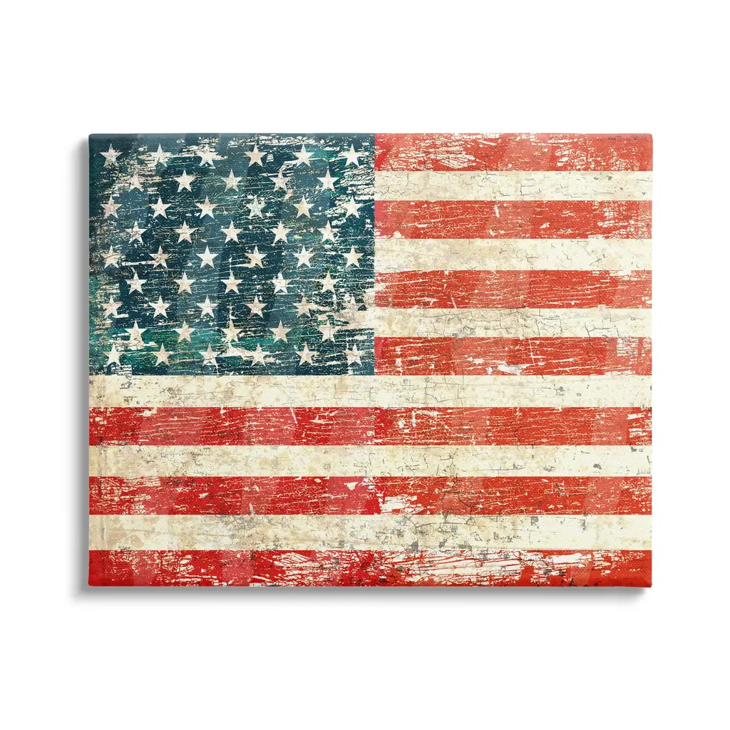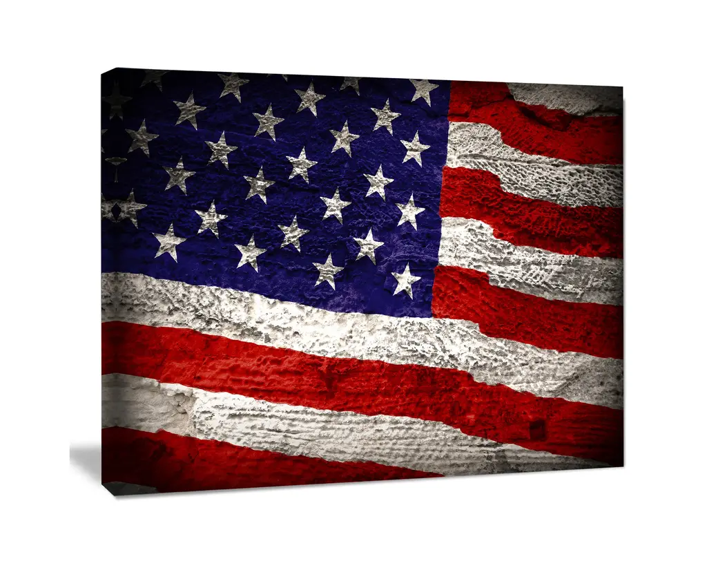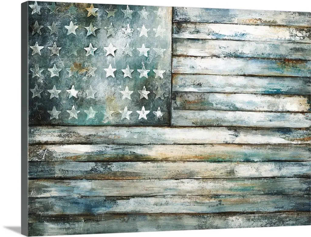 Large American Flag Watercolor, Abstract Canvas Artwork, 60"x28"
