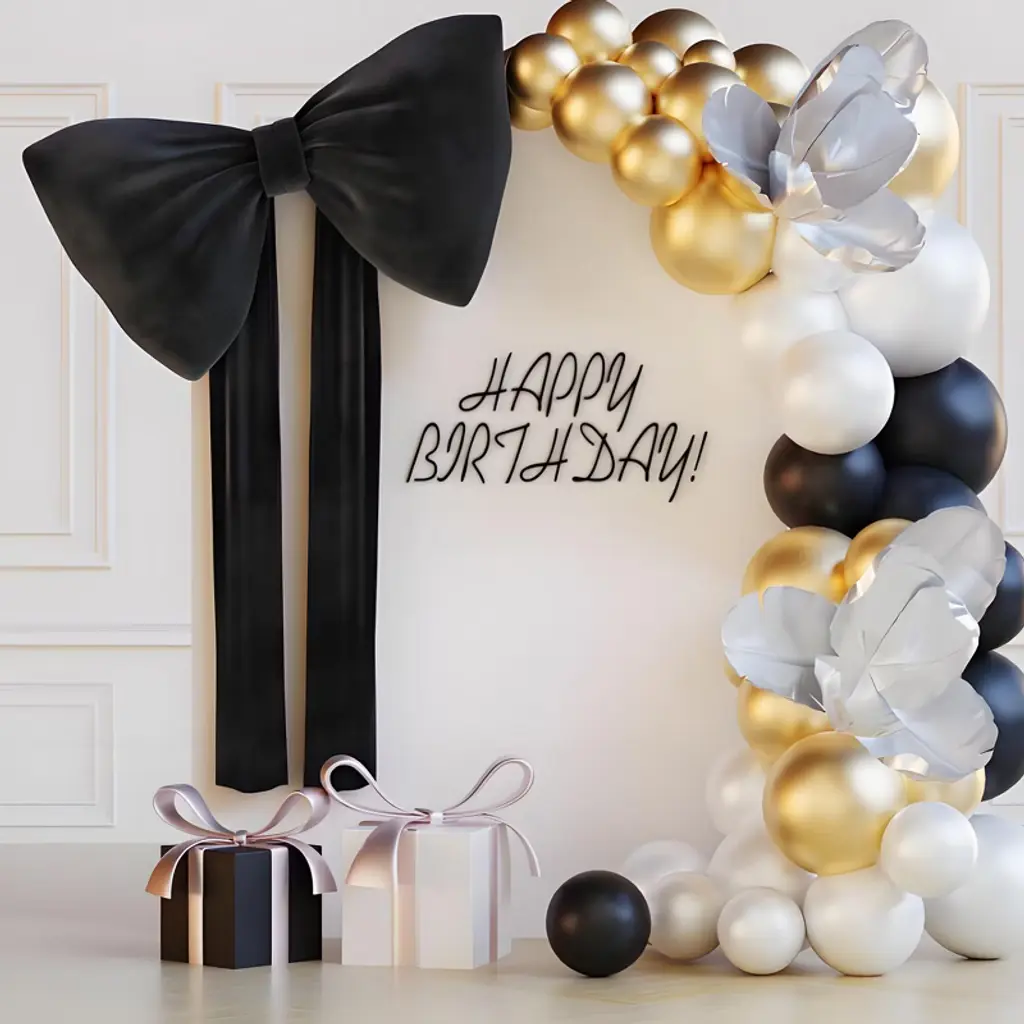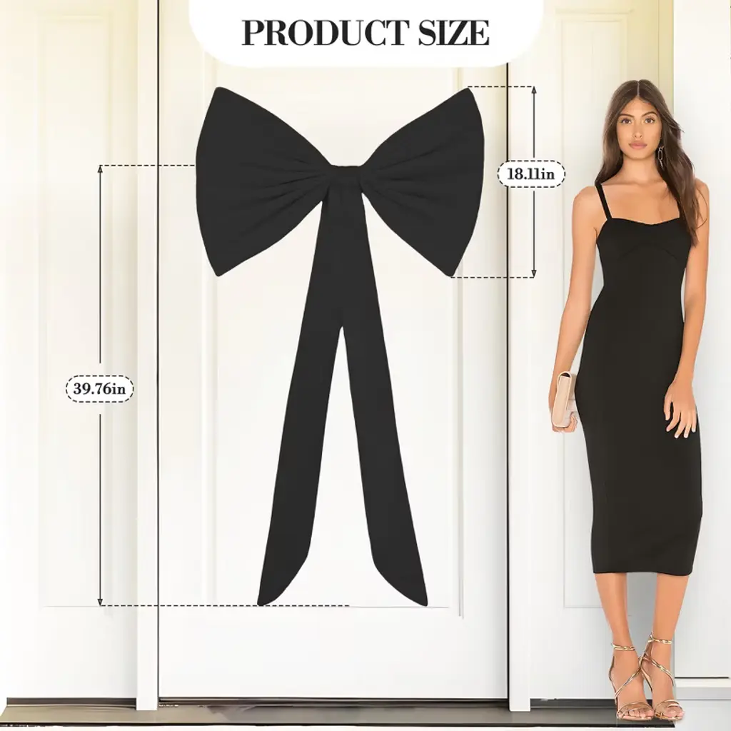 Add elegance to any celebration with this large black velvet bow. Measuring 30"x18" with 40" tails, it’s perfect for birthdays, weddings, holidays, baby showers, or Christmas décor. Made from soft velvet for a luxurious look, this timeless bow arrives ready to use, instantly enhancing your party or home décor.Key Features:Elegant Velvet Material – Crafted from soft velvet fabric, this large bow adds a luxurious touch of sophistication to any celebration.Impressive Large Size – Measures 30"x18" with 40" long tails, designed to be eye-catching and serve as a stunning focal point in your decor.Versatile Decoration – Perfect for birthdays, weddings, baby showers, holidays, Christmas trees, or room décor, enhancing the festive atmosphere.Timeless Classic Design – Bows have symbolized elegance and refinement for centuries, making them a stylish choice for modern or traditional events.Ready to Use – No assembly required. Simply place or hang the bow to instantly elevate your party setup with convenience and style.SpecificationsMaterial: Velvet fabricColor: BlackSize: 30" × 18" (bow), 40" tailsStyle: Classic decorative bowOccasion: Birthday, wedding, baby shower, Christmas, holiday party, room décorPackage List1 × Large Black Velvet Bow (30"×18" with 40" tails)