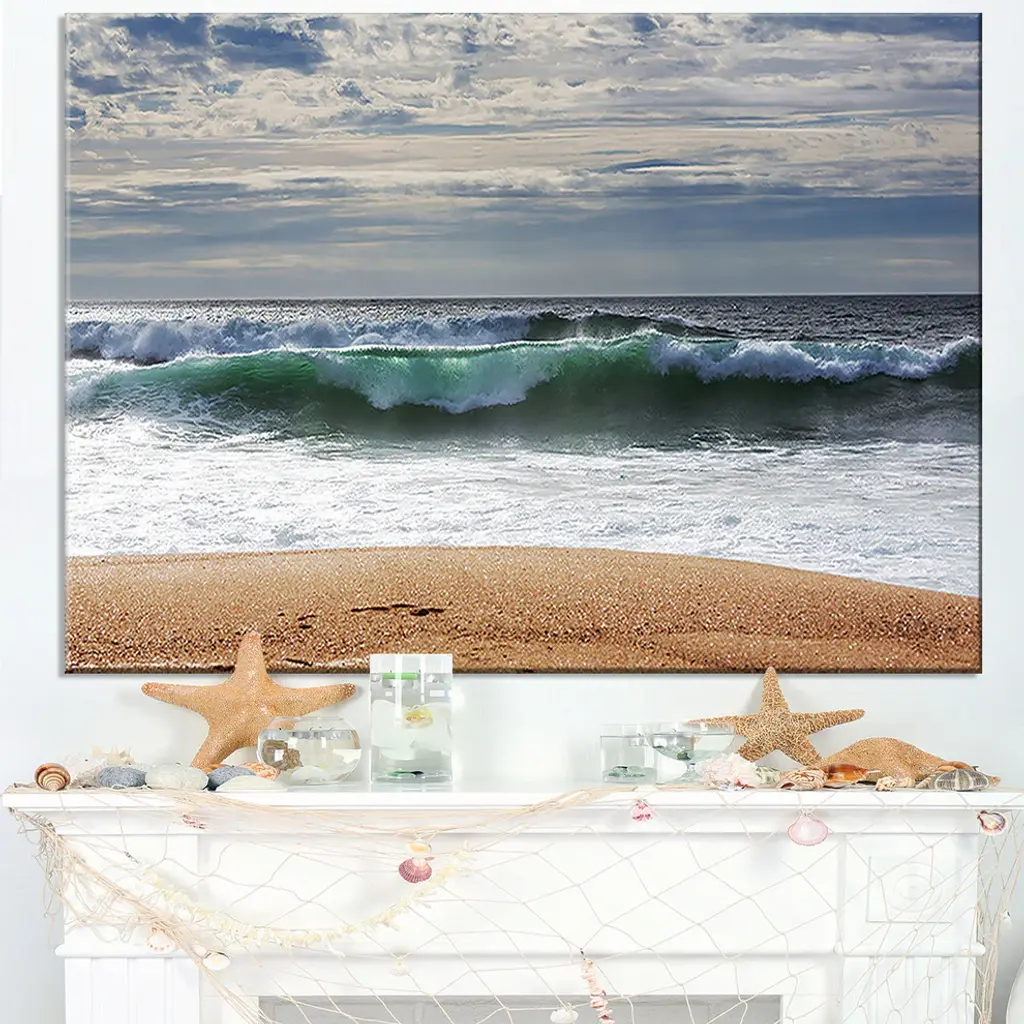 The Large Blue Waves and Blue Sky canvas art print is sure to make an impression on anyone who sees it. This artwork is gallery wrapped around a 1-inch solid wood frame and arrives carefully packaged and entirely ready to hang on the wall. Design Art only uses the highest resolution and pigments to ensure a crisp colorful print that is never faded or pixelated. This artwork is sure to be a conversation starter in any home or office.