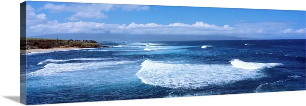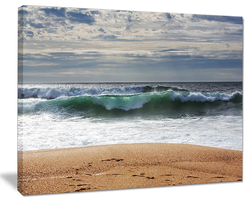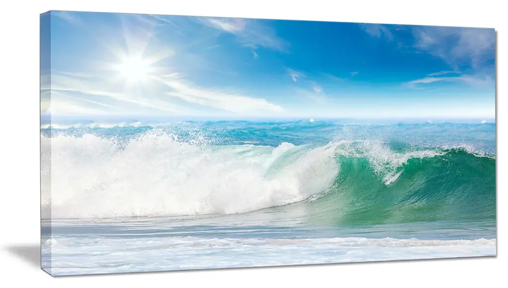 The Large Blue Waves and Blue Sky canvas art print is sure to make an impression on anyone who sees it. This artwork is gallery wrapped around a 1-inch solid wood frame and arrives carefully packaged and entirely ready to hang on the wall. Design Art only uses the highest resolution and pigments to ensure a crisp colorful print that is never faded or pixelated. This artwork is sure to be a conversation starter in any home or office.