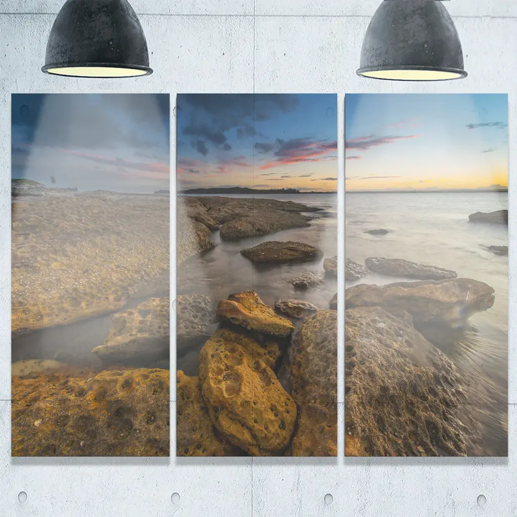 "Large Brown Rocks At Sydney Beach" Metal Wall Art, 3 Panels, 36"x28"