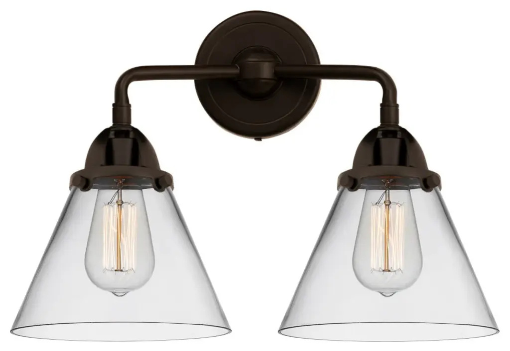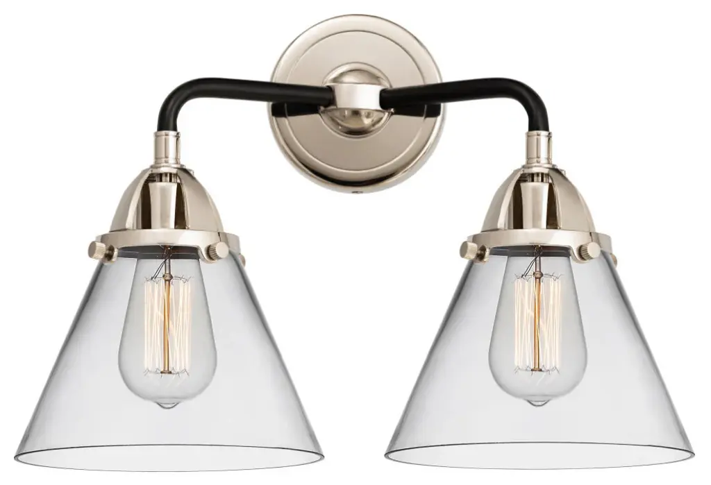 Large Cone Bath Vanity Light, Black Polished Nickel, Clear, Clear