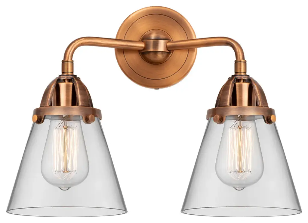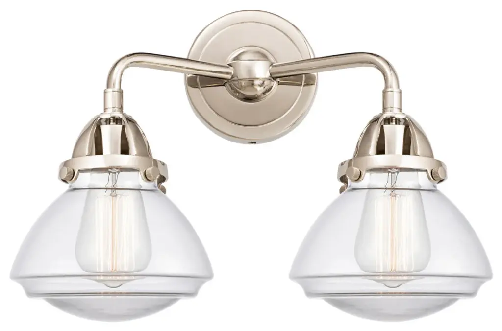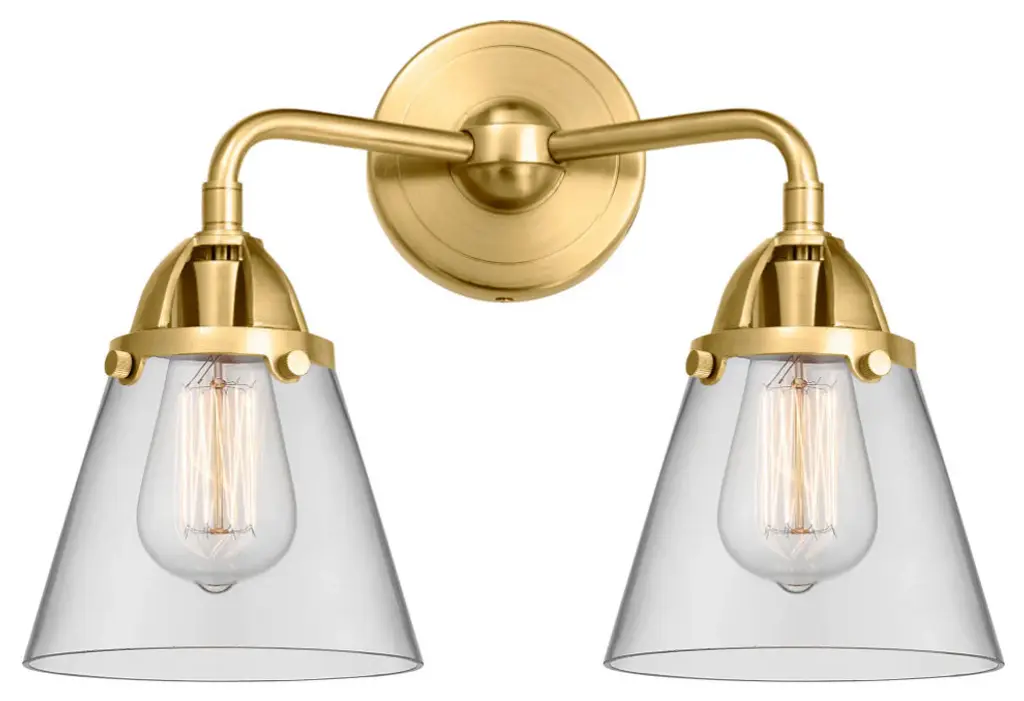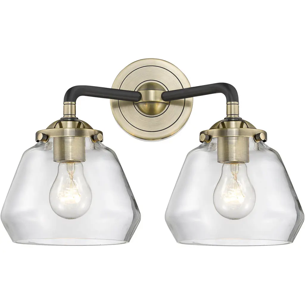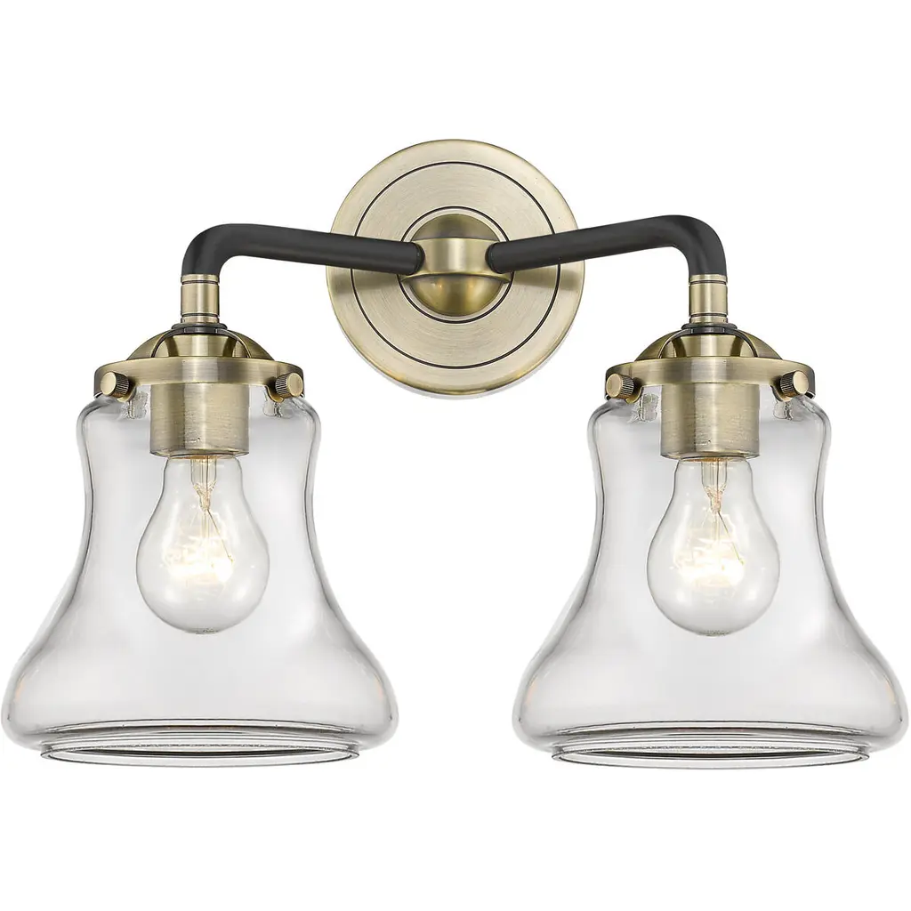 The Nouveau 2 is a highly detailed work of art that draws the eyes into its base and arm detail. The true show stopping piece is the beautifully curved glass shade that''s sure to wow you and guests alike.Features:Fixture can be hung with bulbs facing up or down4.5 inch 2mm heavy cast backplateDistance from outlet opening to top of fixture 2.25 inchesRated for 100 watt maximum per socketUL/CUL Damp RatedCompatible with Incandescent, LED, Fluorescent and Halogen bulbsNumber of Bulbs: 2Bulb Wattage: 3.5Bulb Type: LEDBulb Included: IncludedVoltage: 120Finish: Black Polished Nickel, Clear