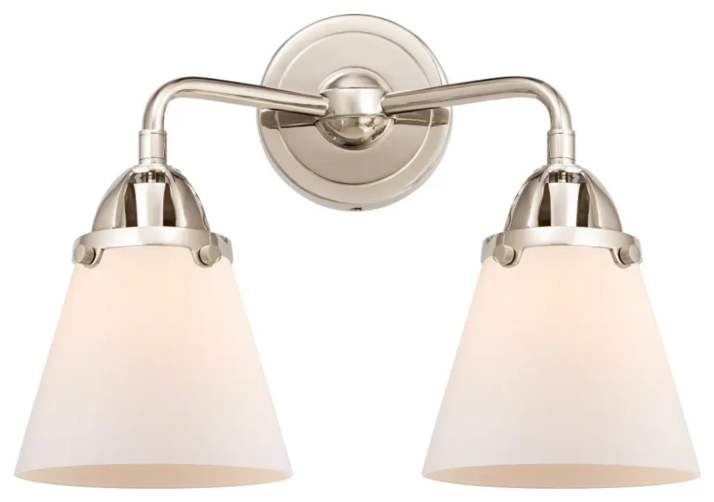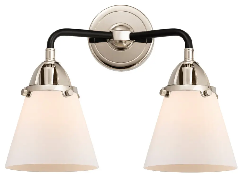 Large Cone Bath Vanity Light, Black Polished Nickel, Matte White, Matte White