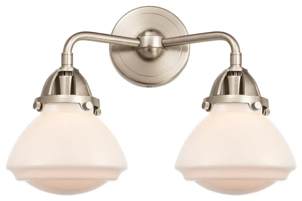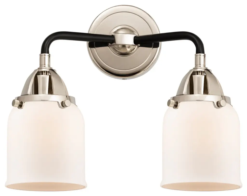 The Nouveau 2 is a highly detailed work of art that draws the eyes into its base and arm detail. The true show stopping piece is the beautifully curved glass shade that''s sure to wow you and guests alike.Features:Fixture can be hung with bulbs facing up or down4.5 inch 2mm heavy cast backplateDistance from outlet opening to top of fixture 2.25 inchesRated for 100 watt maximum per socketUL/CUL Damp RatedCompatible with Incandescent, LED, Fluorescent and Halogen bulbsNumber of Bulbs: 2Bulb Wattage: 60Bulb Type: IncandescentBulb Included: Not IncludedVoltage: 120Finish: Black Polished Nickel, Matte White
