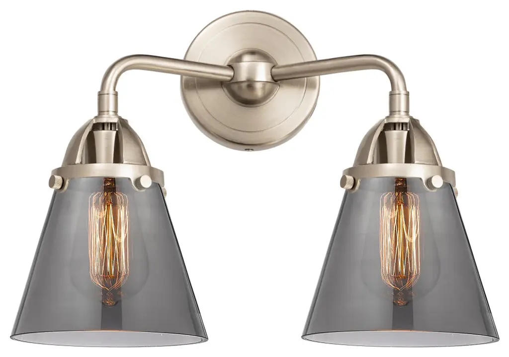 The Nouveau 2 is a highly detailed work of art that draws the eyes into its base and arm detail. The true show stopping piece is the beautifully curved glass shade that''s sure to wow you and guests alike.Features:Fixture can be hung with bulbs facing up or down4.5 inch 2mm heavy cast backplateDistance from outlet opening to top of fixture 2.25 inchesRated for 100 watt maximum per socketUL/CUL Damp RatedCompatible with Incandescent, LED, Fluorescent and Halogen bulbsNumber of Bulbs: 2Bulb Wattage: 60Bulb Type: IncandescentBulb Included: Not IncludedVoltage: 120Finish: Polished Nickel, Clear
