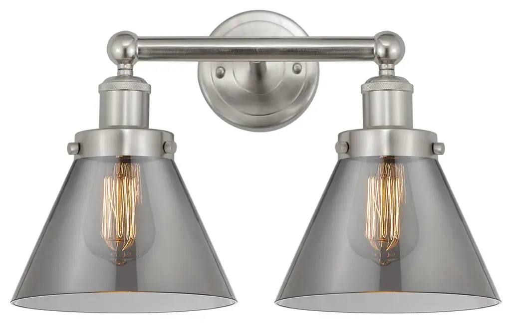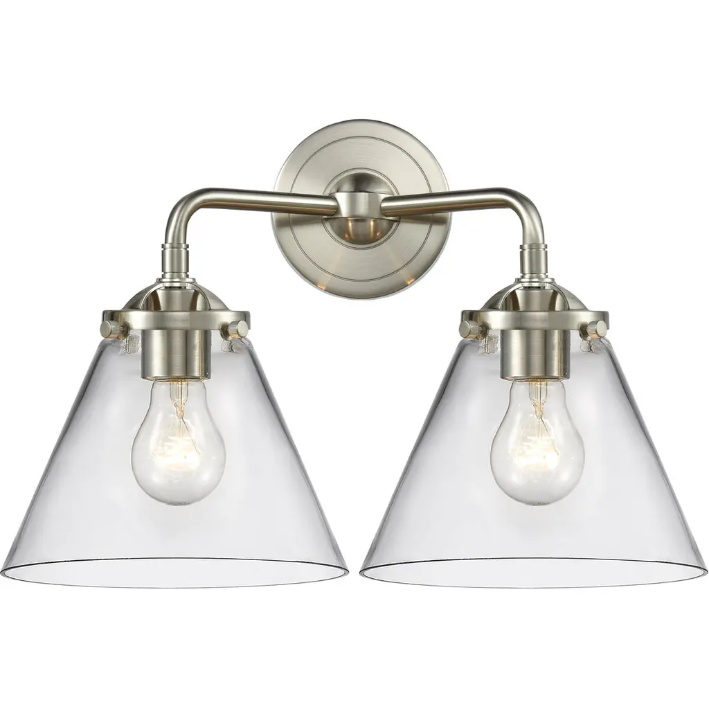 Large Cone Bath Vanity Light, Polished Nickel, Clear, Clear