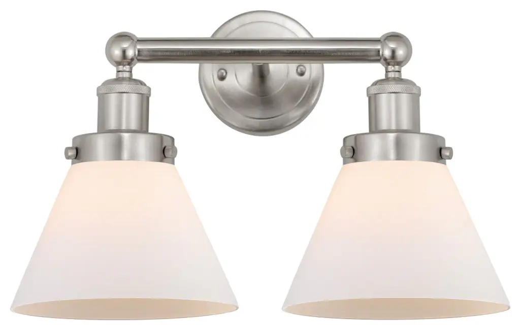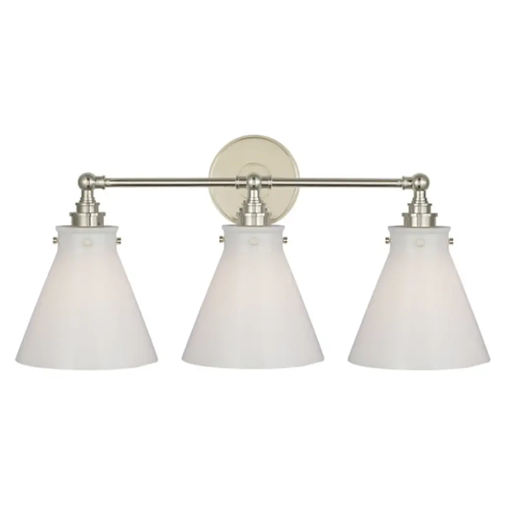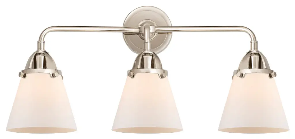 Large Cone Bath Vanity Light, Polished Nickel, Matte White, Matte White