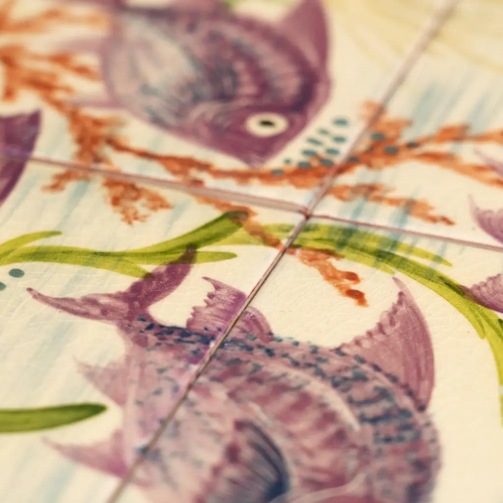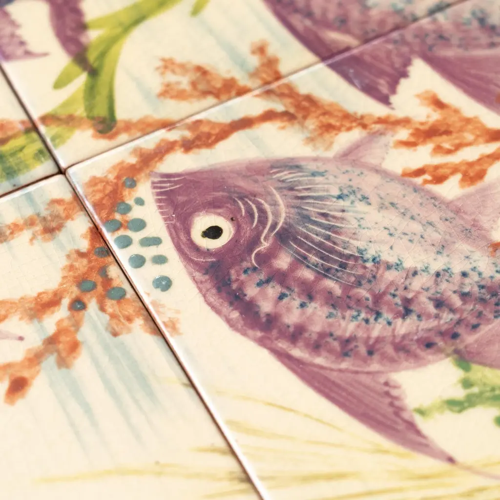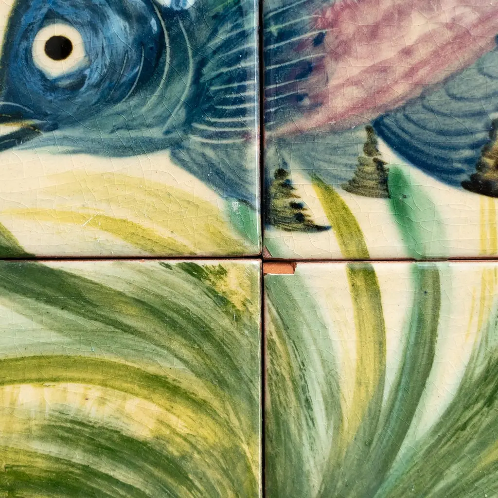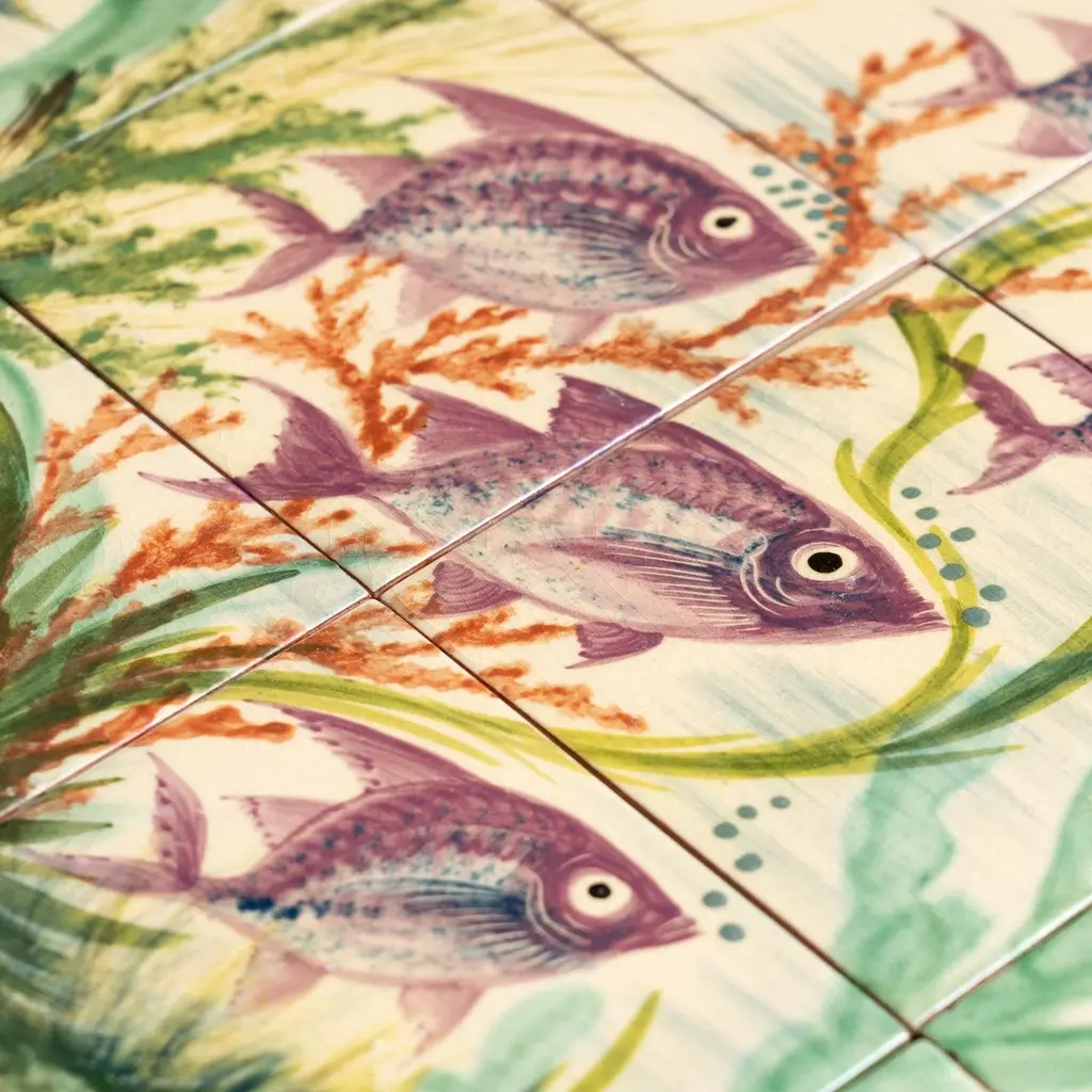 Dive into the mesmerizing world of Catalan artist Diaz Costa with this captivating ceramic hand-painted large artwork featuring a school of fishes, a masterpiece from around 1960. Adorned with the artist's signature, this exquisite piece is a testament to the skill and creativity of Diaz Costa.In its original condition, the artwork showcases a charming patina that adds character, with minor wear that tells the story of its age and the admiration it has garnered over time. The meticulous hand-painted details bring the underwater scene to life, making it a striking focal point in any space.The unique presentation of the tiles, which come separated and not attached, adds an element of flexibility in displaying this remarkable artwork. Each tile tells a part of the artistic narrative, allowing for a customizable arrangement that suits your aesthetic preferences.Immerse yourself in the timeless allure of Diaz Costa's creation – a harmonious dance of color and form that invites you to appreciate the beauty of the underwater world. This ceramic artwork is not just a visual delight but a testament to the enduring legacy of a talented artist.