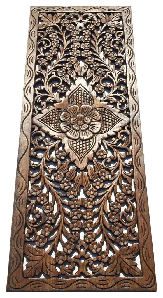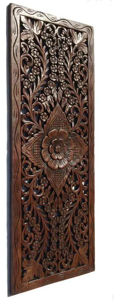 Large Floral Wood Carved Wall Panel Decoration. Wall Relief Panel, Brown
