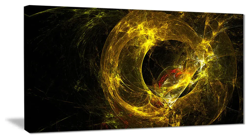 The Large Fractal Artwork Yellow canvas art print is sure to make an impression on anyone who sees it. This artwork is gallery wrapped around a 1-inch solid wood frame and arrives carefully packaged and entirely ready to hang on the wall. Design Art only uses the highest resolution and pigments to ensure a crisp colorful print that is never faded or pixelated. This artwork is sure to be a conversation starter in any home or office.