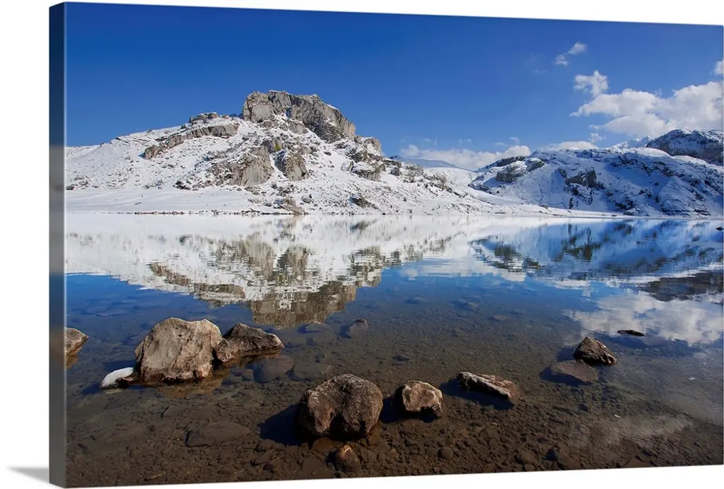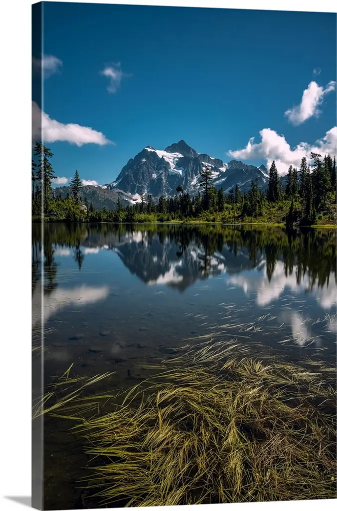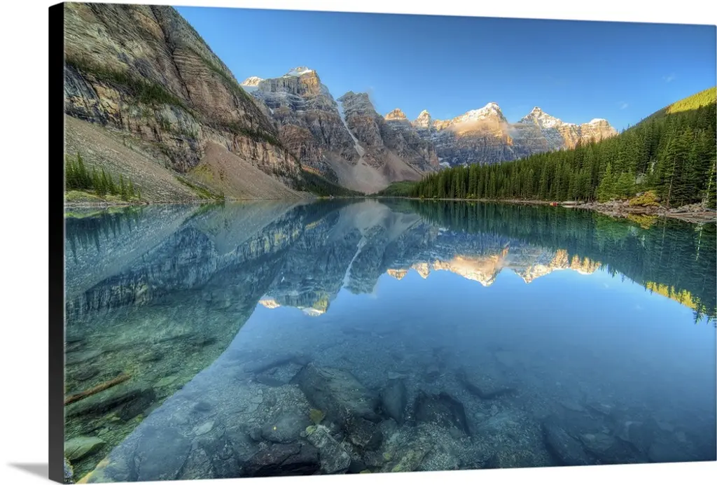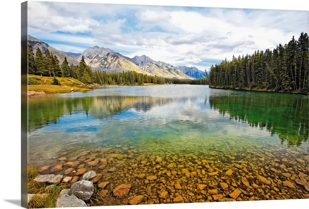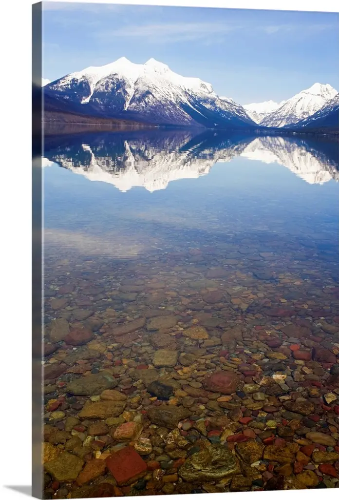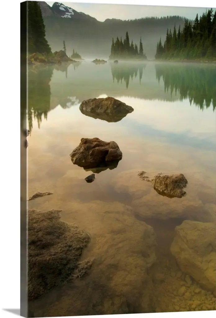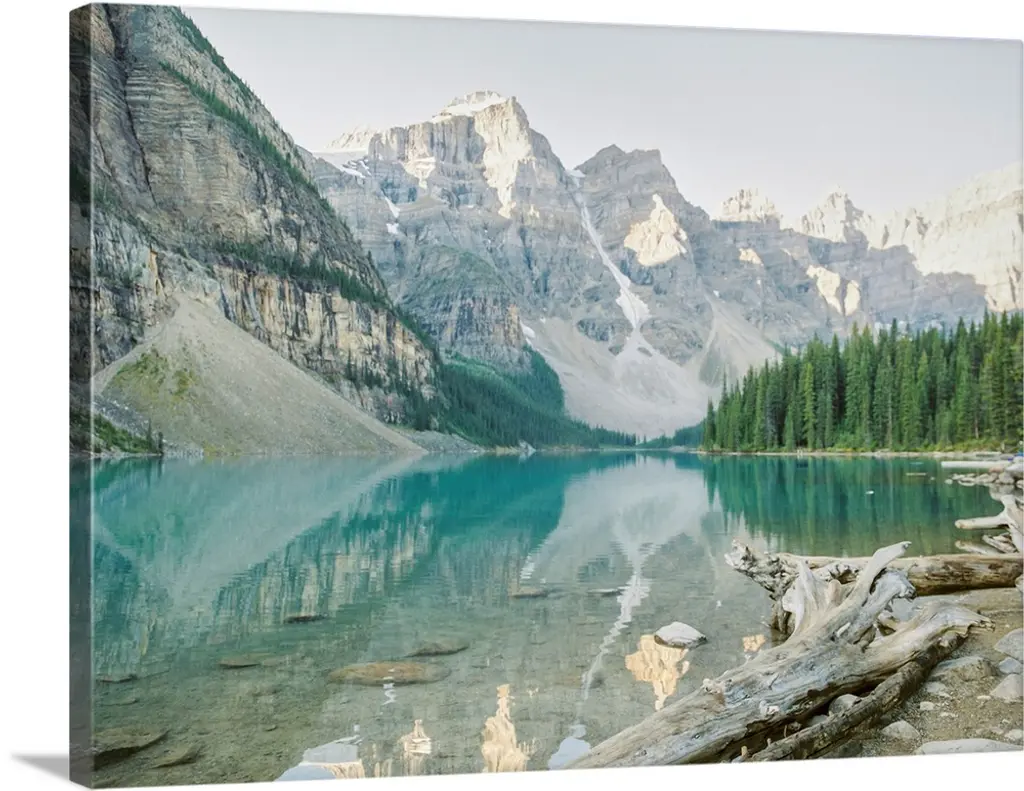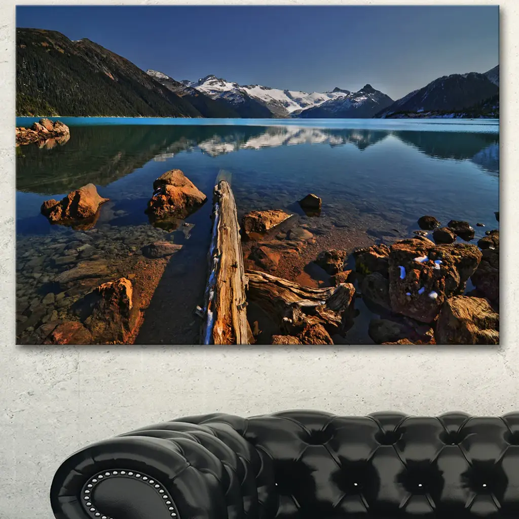 Large Logs In Mountain Lake, Extra Large Landscape Canvas Art Print, 60"x28"