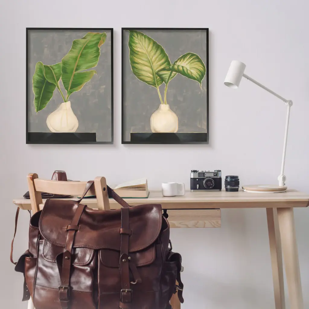Large Palm Leaf Potted Plants Interior Still Life,24 X 30
