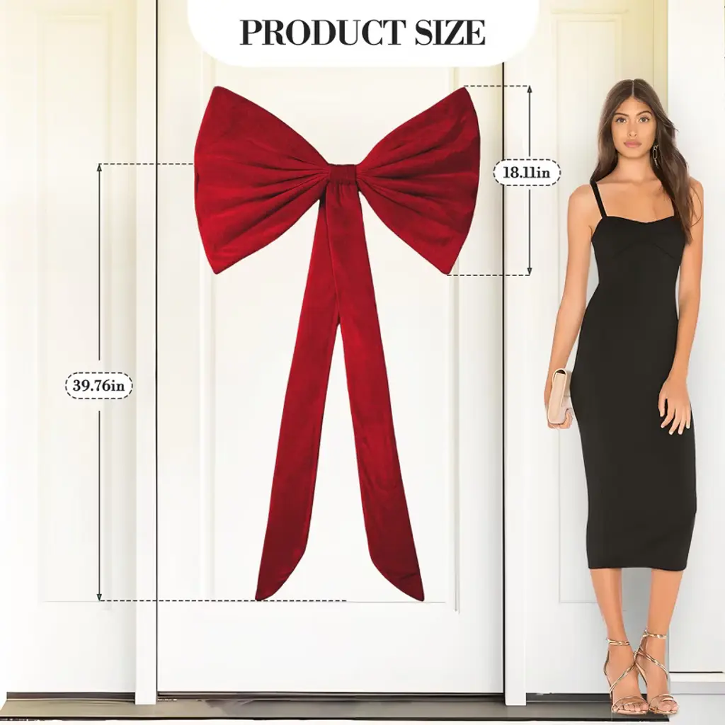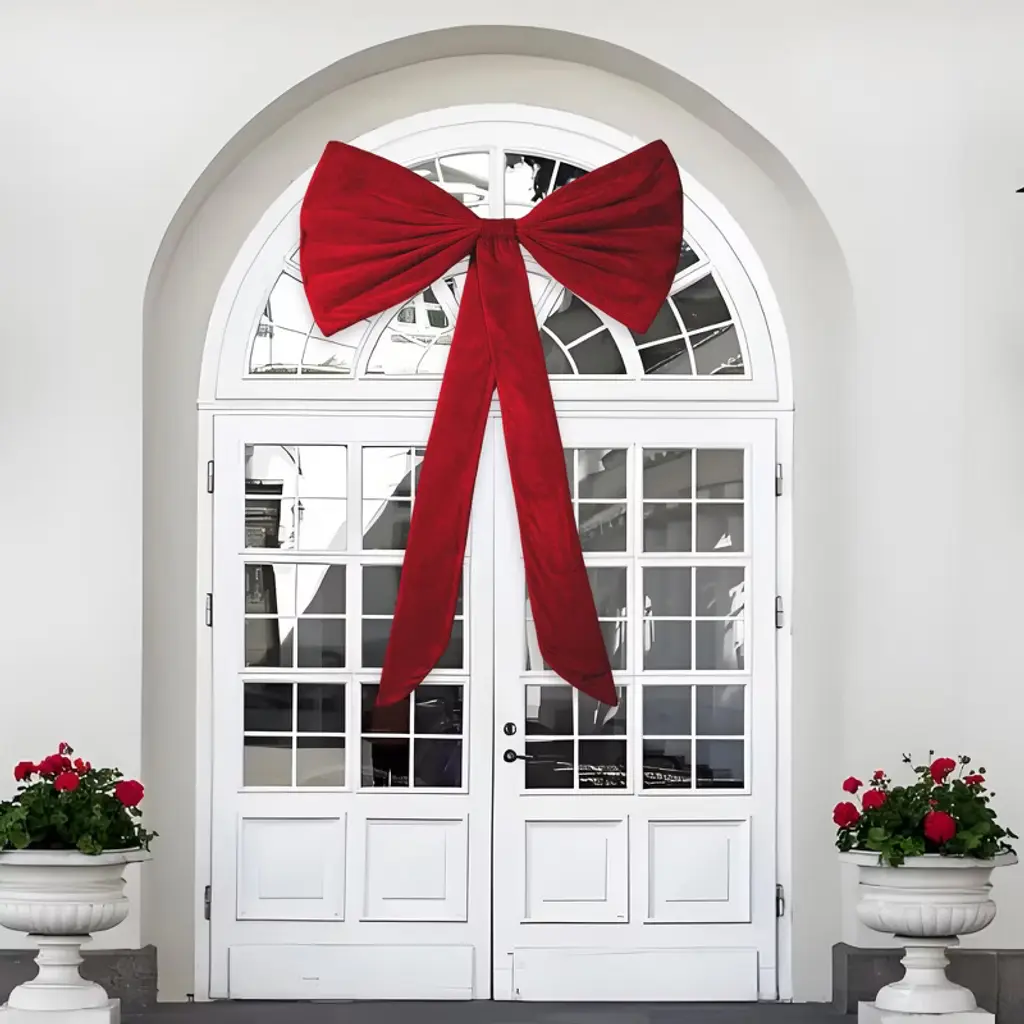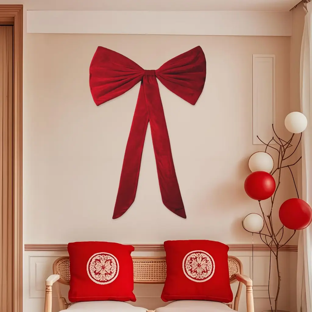 Add elegance to any celebration with this large Red velvet bow. Measuring 30"x18" with 40" tails, it’s perfect for birthdays, weddings, holidays, baby showers, or Christmas décor. Made from soft velvet for a luxurious look, this timeless bow arrives ready to use, instantly enhancing your party or home décor.Key Features:Elegant Velvet Material – Crafted from soft velvet fabric, this large bow adds a luxurious touch of sophistication to any celebration.Impressive Large Size – Measures 30"x18" with 40" long tails, designed to be eye-catching and serve as a stunning focal point in your decor.Versatile Decoration – Perfect for birthdays, weddings, baby showers, holidays, Christmas trees, or room décor, enhancing the festive atmosphere.Timeless Classic Design – Bows have symbolized elegance and refinement for centuries, making them a stylish choice for modern or traditional events.Ready to Use – No assembly required. Simply place or hang the bow to instantly elevate your party setup with convenience and style.SpecificationsMaterial: Velvet fabricColor: RedSize: 30" × 18" (bow), 40" tailsStyle: Classic decorative bowOccasion: Birthday, wedding, baby shower, Christmas, holiday party, room décorPackage List1 × Large Red Velvet Bow (30"×18" with 40" tails)