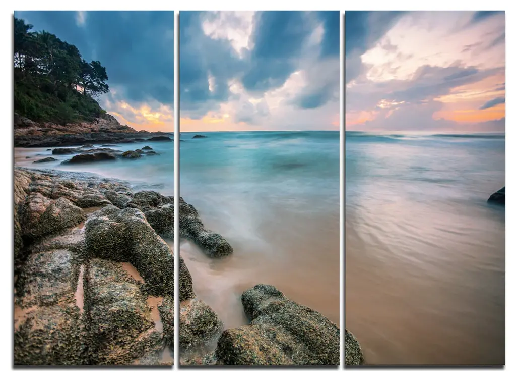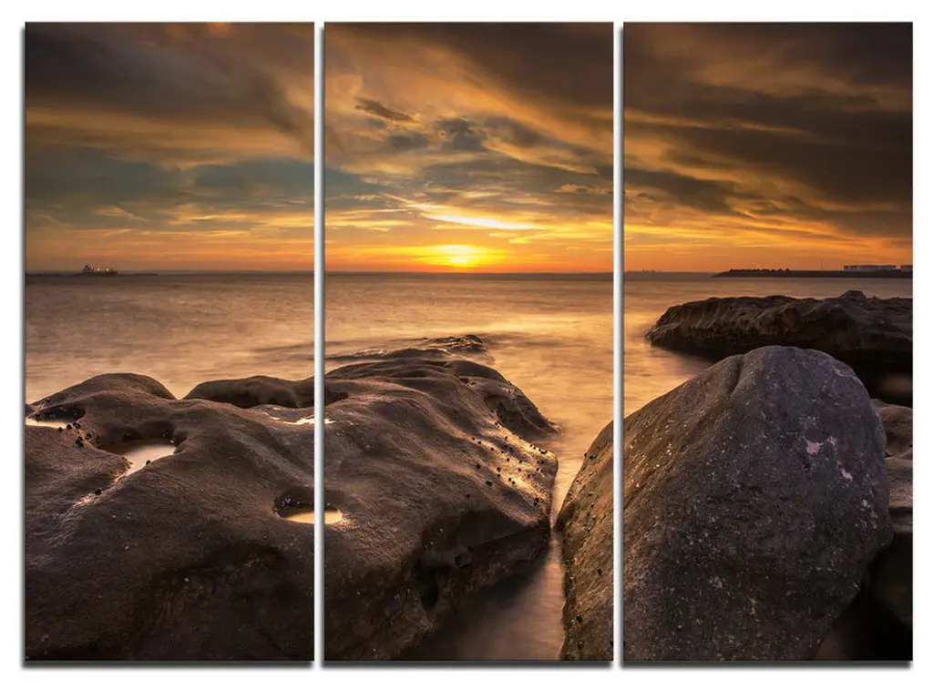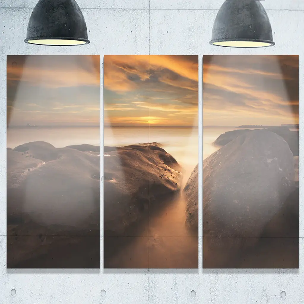 "Large Rocks At La Perouse Bridge" Metal Wall Art, 3 Panels, 36"x28"