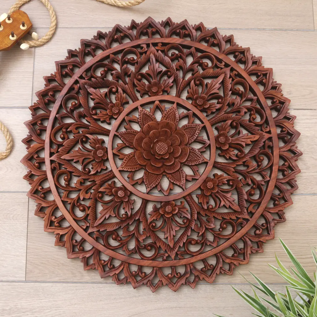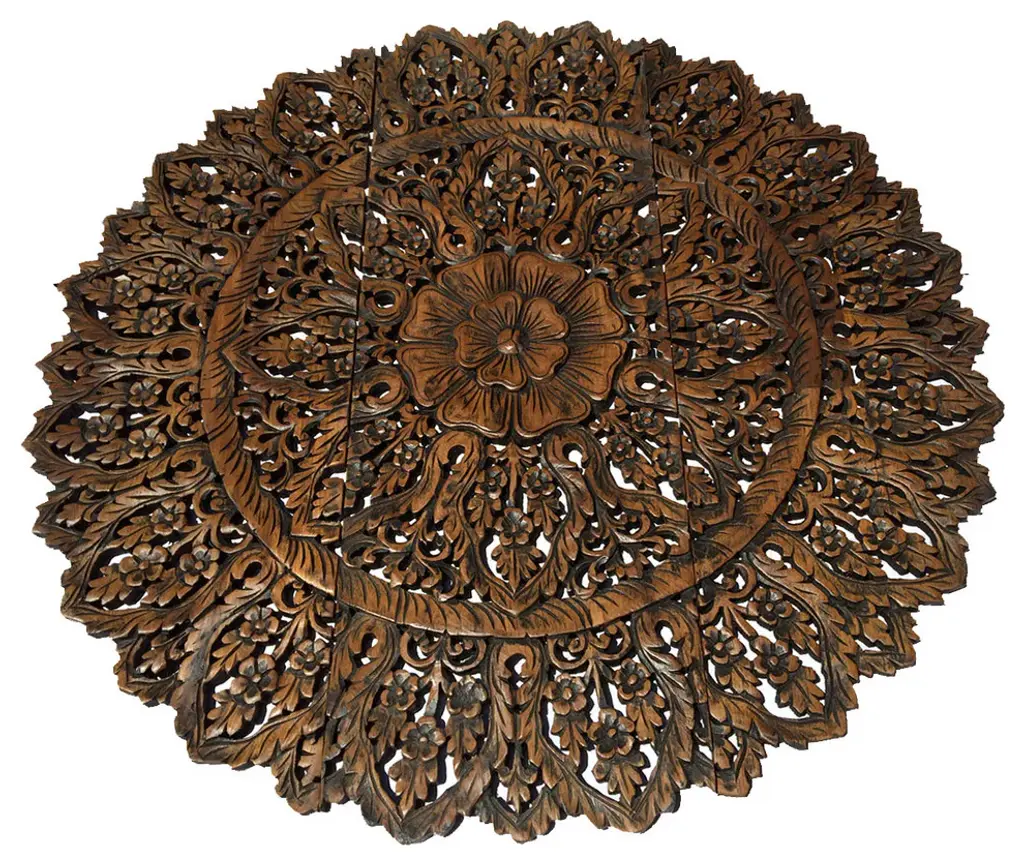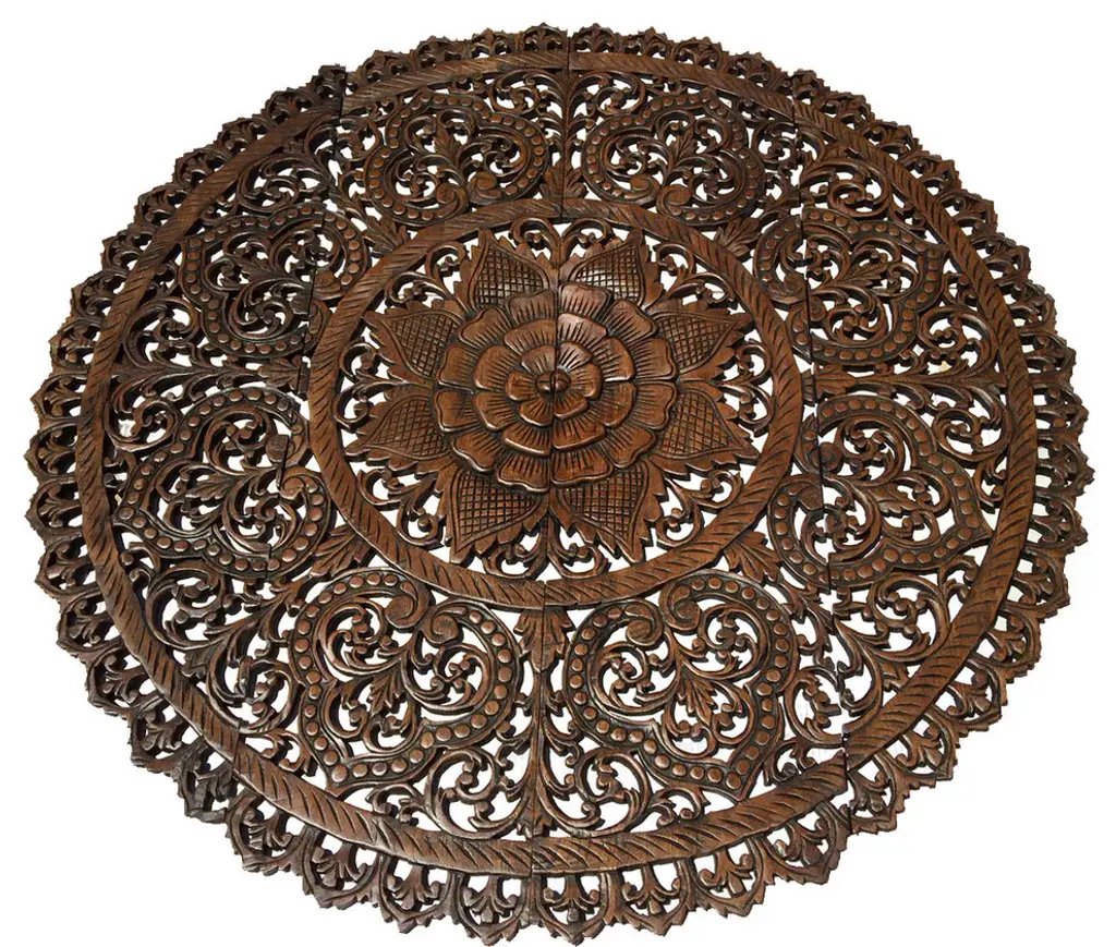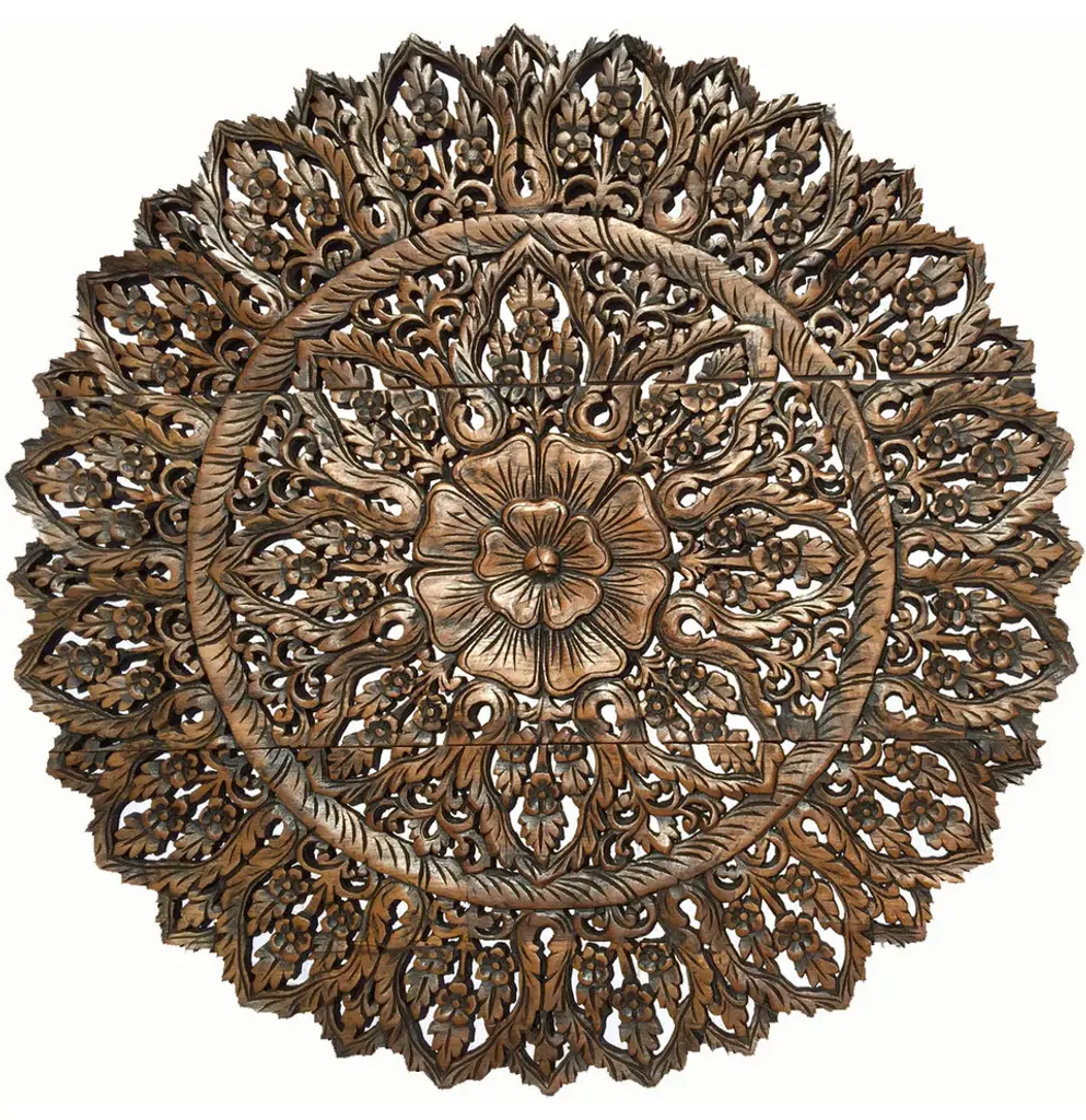 Large Round Thai Carving Floral Wood Carved Wall Panel. , Brown, 36"x36"