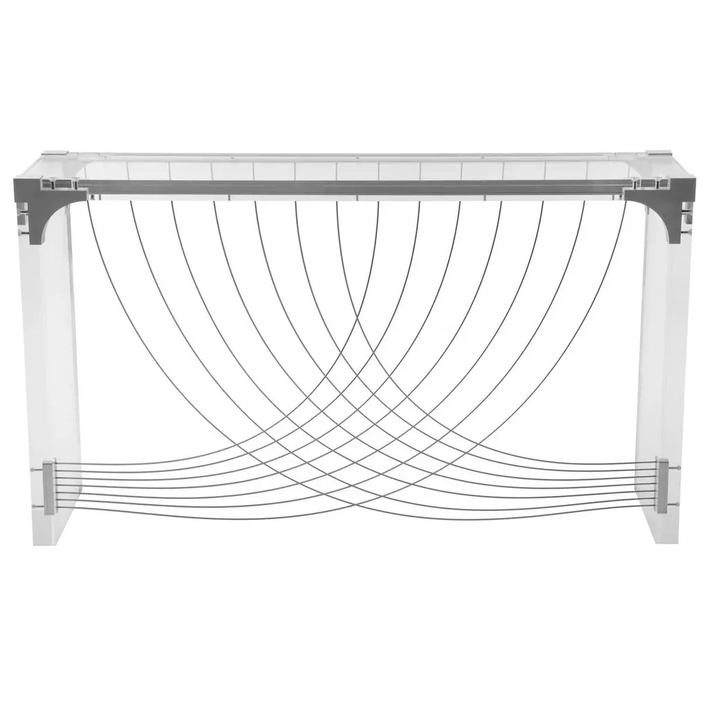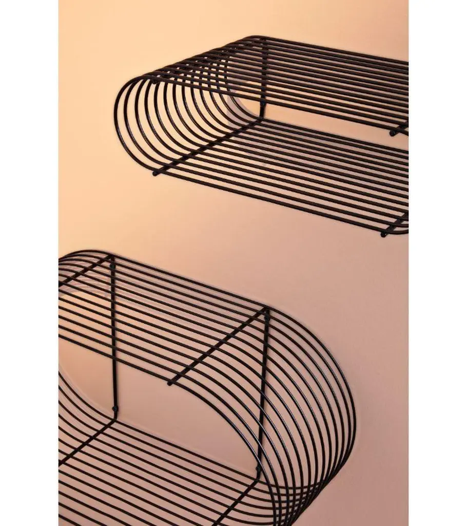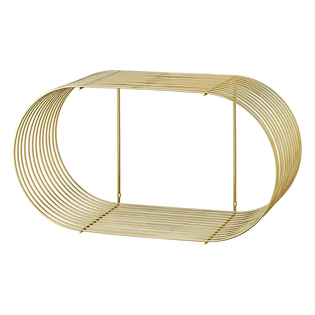 Large silver contemporary shelfDimensions: L 61.4 x W 25.3 x H 33 cm Materials: Steel.Also available in Gold and Black. It is not always easy to determine what makes a design become an icon, but it seems the Curva shelf has accomplished just that. It's perfect as a bedside table or as an art piece on an empty wall. The shape and material are what we believe make this an icon that now comes in three distinct colors, stainless steel, black, and gold.