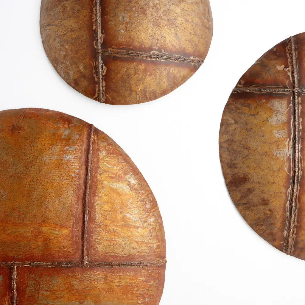 Designed for Cyan Design by J. Kent Martin. The Spur Line metal wall art is a stylish addition to your home or commercial design project. The artwork features a linear design with a rustic touch. A handcrafted metallic finish produces subtle indentions and a distressed brown finish. Equipped with built-in hanging brackets, this piece of decor is perfect for your rustic ranch styling or modern farmhouse aesthetics. The Large Spur Line Wall Art by Cyan. Cyan Designs combines unique designs with high-end materials to bring you the very best home decor in the business. When you order a product engineered and manufactured by Cyan Designs, you''re guaranteed to get a product that is built to last for years and years to come. This product will come in ship-safe packaging materials and will sure to impress!DimensionsDepth: 30 in. Width: 30 in. Height: 5. 5 in. Weight: 12. 4 lbs.